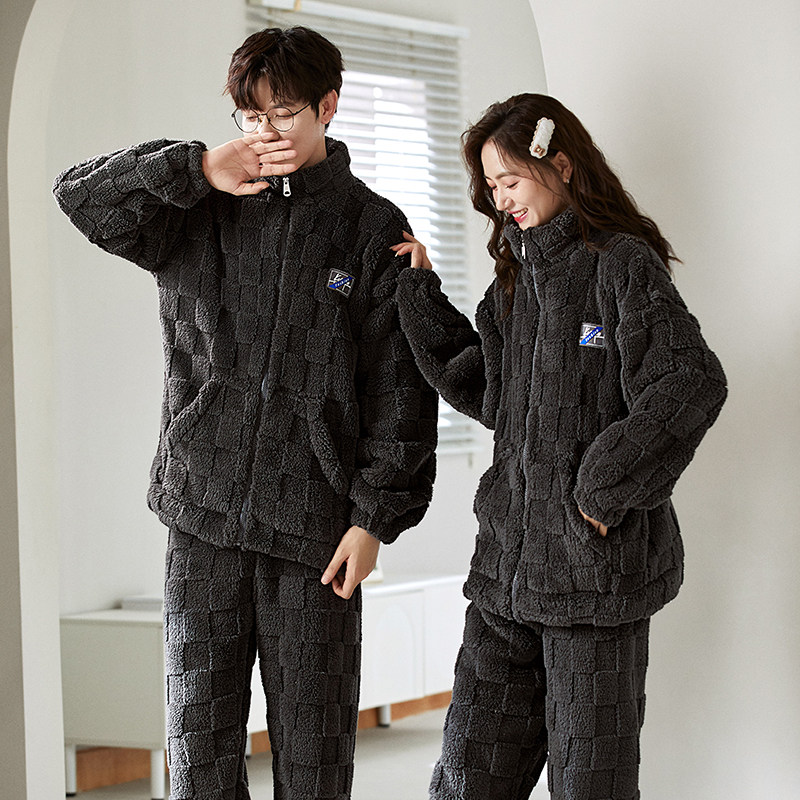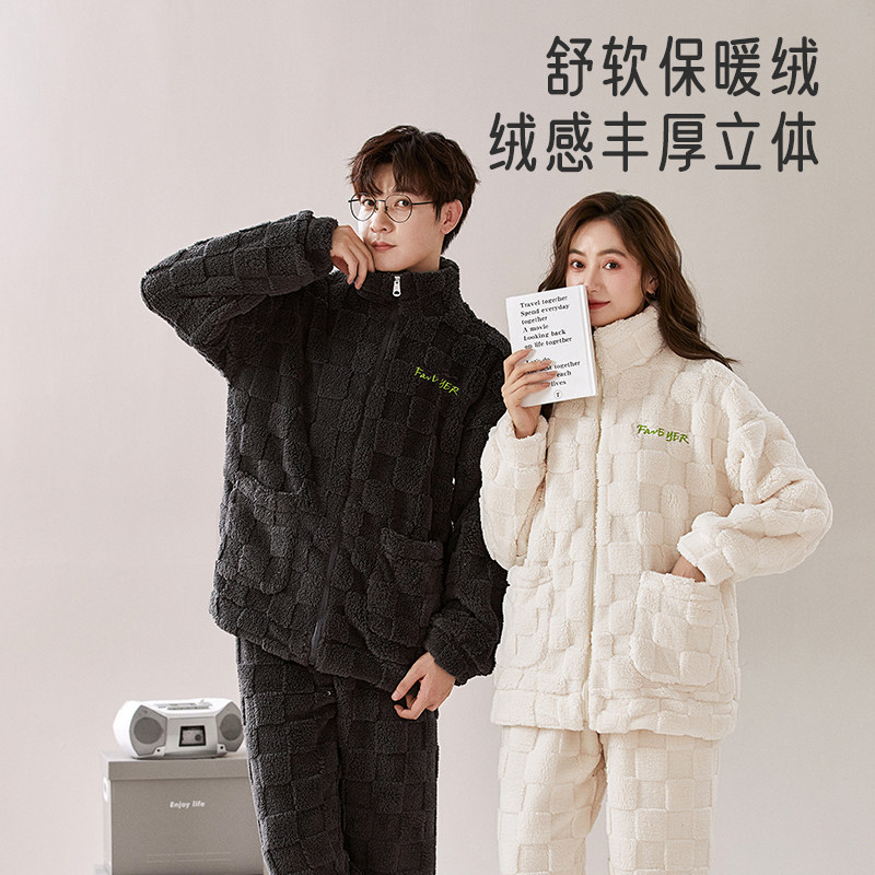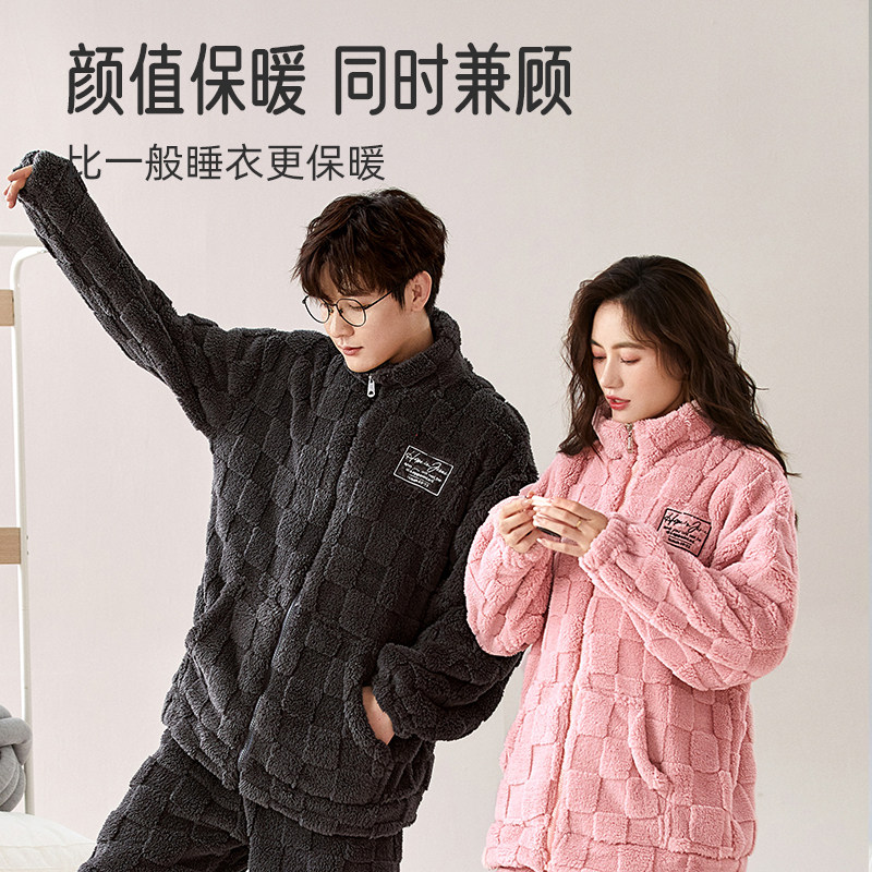 宜而爽秋冬男女生情侣款锁温保暖居家睡衣 男女绒感立领家居套装