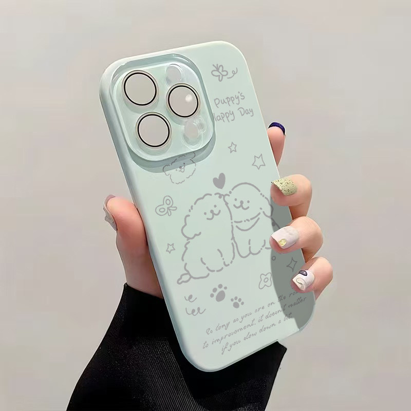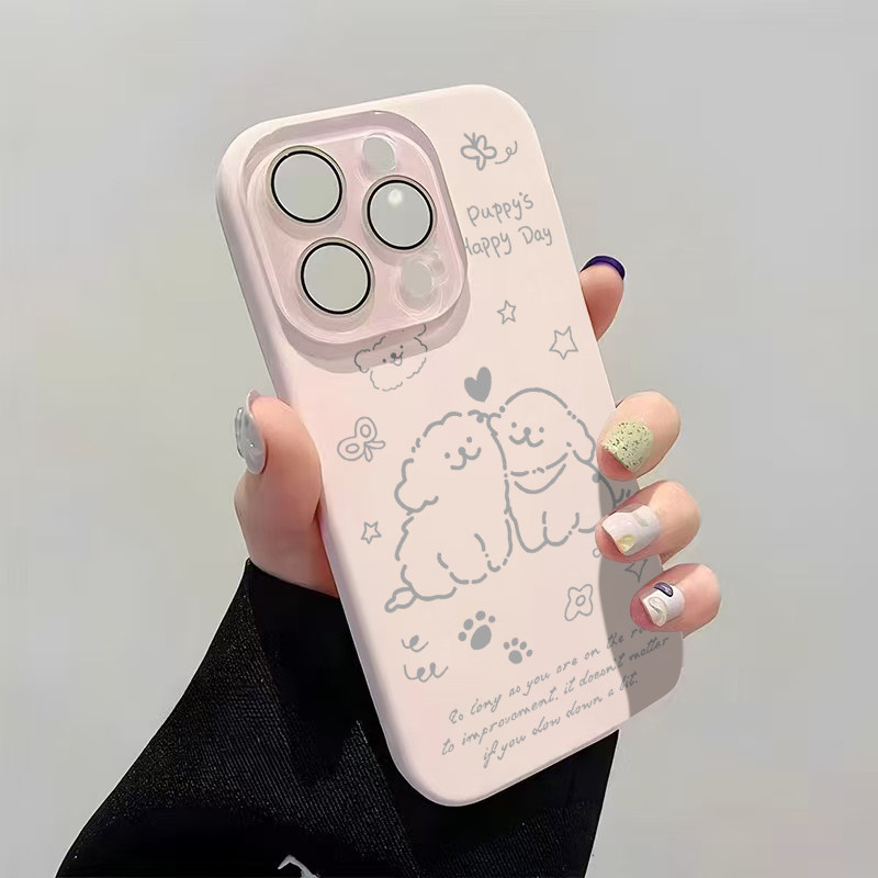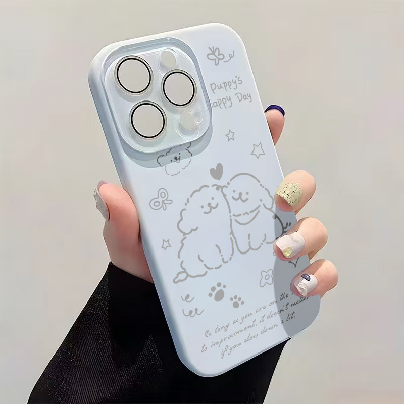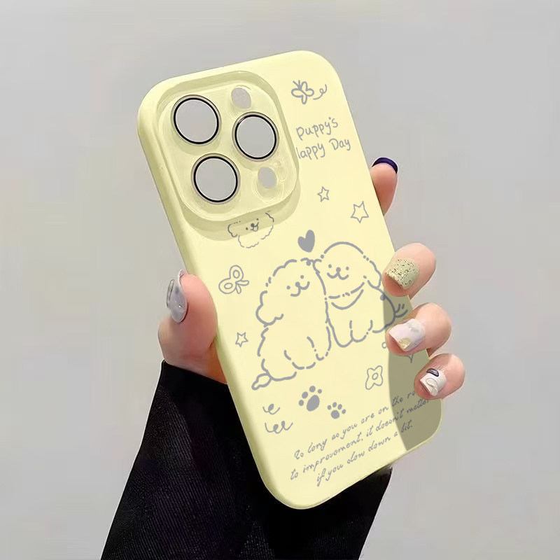 ins风小视窗带镜头膜适用苹果16Promax手机壳iPhone15Promax液态硅胶14Pro线条小狗13可爱卡通12防摔保护套