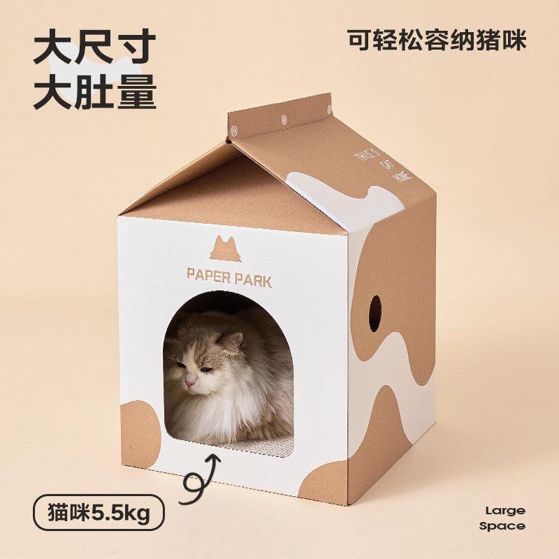paperpark牛奶盒猫窝猫抓板一体猫房别墅瓦楞纸耐抓磨猫用品玩具