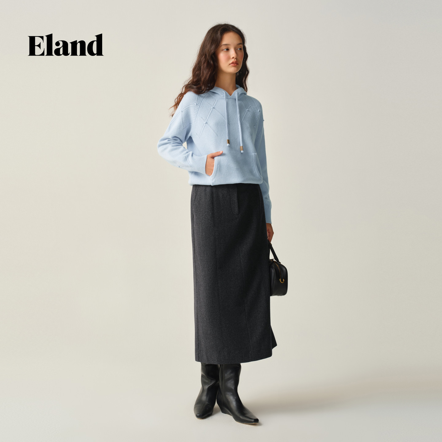 Eland衣恋半身裙女休闲通勤纯色收腰直筒裙长裙2025冬季新款
