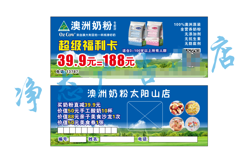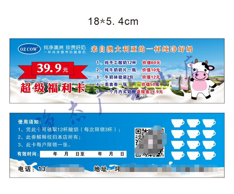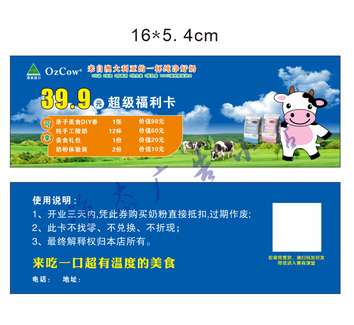 【金可澳福利卡】澳洲奶粉牛奶现金券酸奶美食体验卡卷设计印刷