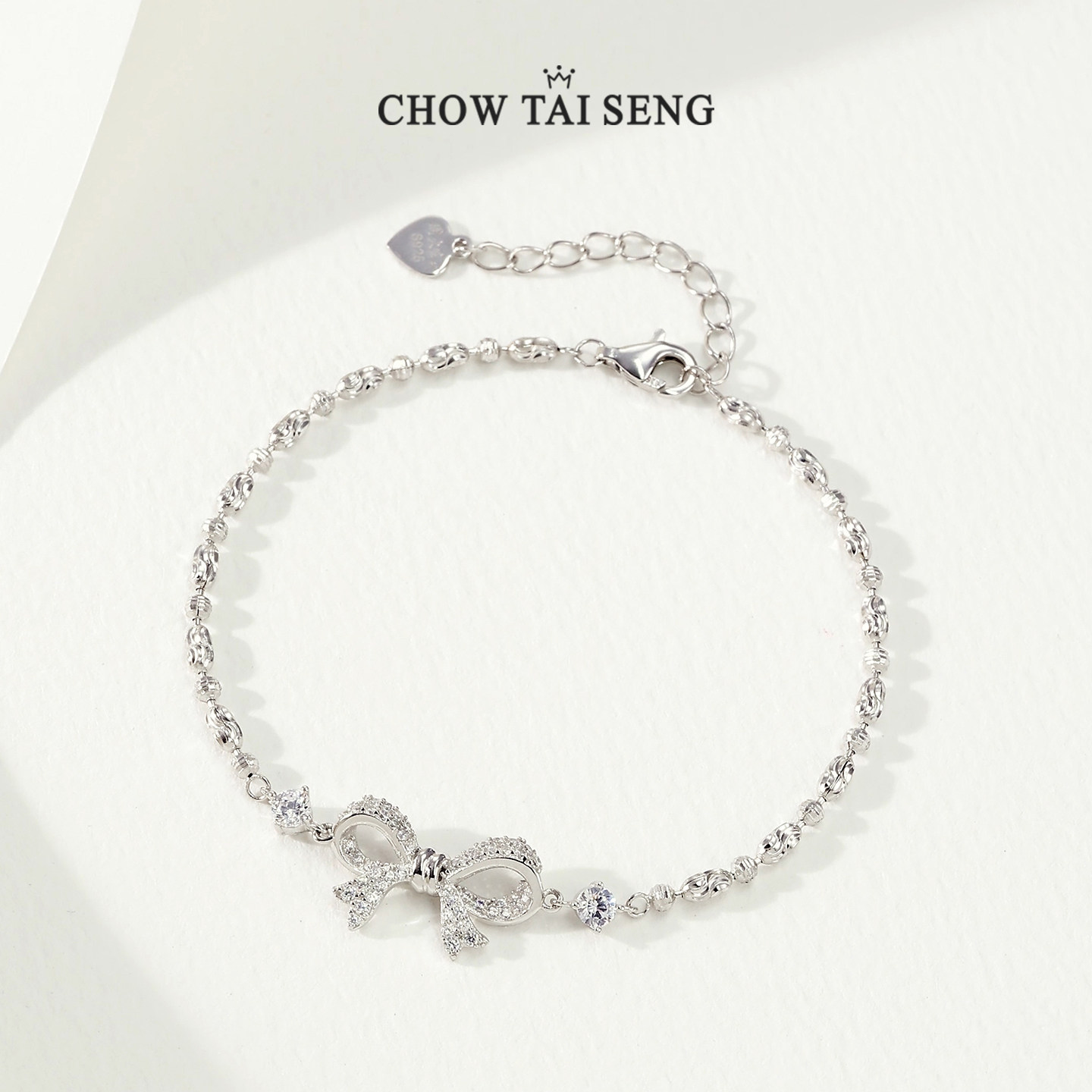 周大生蝴蝶结手链S925纯银轻奢小众高级感精致手饰生日礼物送女友