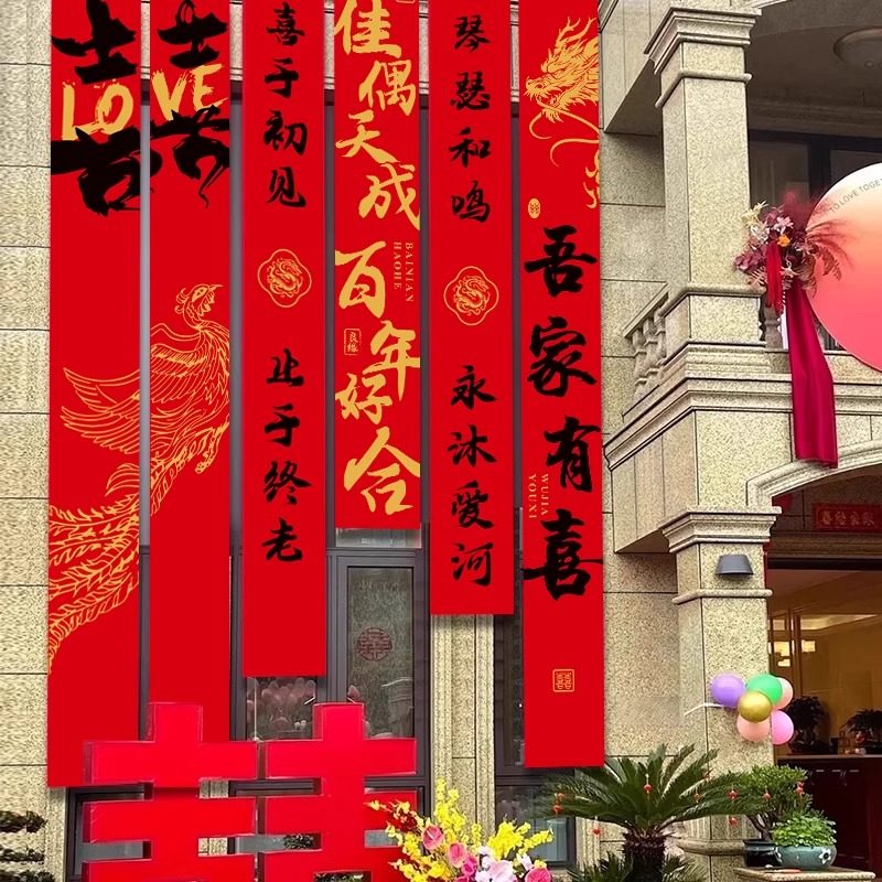 结婚农村院子装饰婚礼布置庭院条幅大挂布自建房场景户外院子婚房