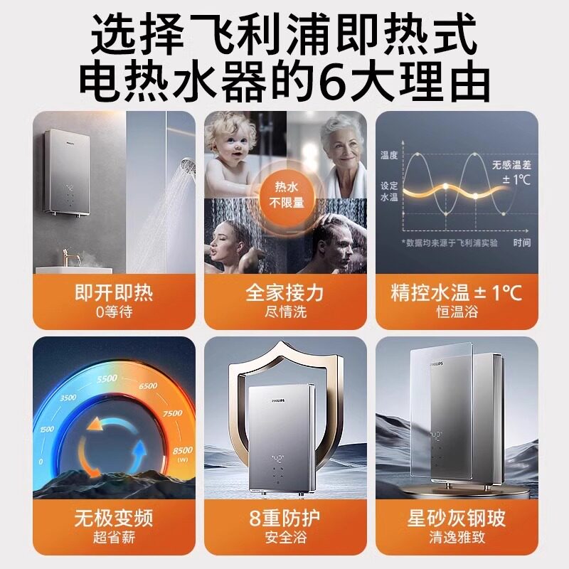 飞利浦即热式电热水器家用浴室洗澡恒温速热2405