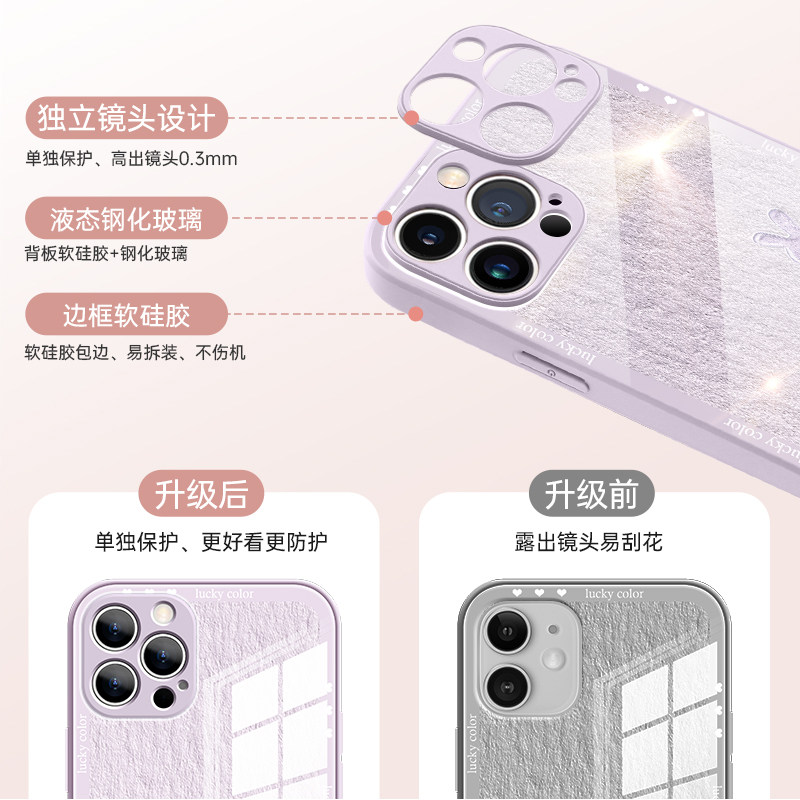 适用苹果13手机壳15新款iphone14promax玻璃12兔子11防摔14pro全包plus女款xr手机套x高级感xs彩绘13promax男