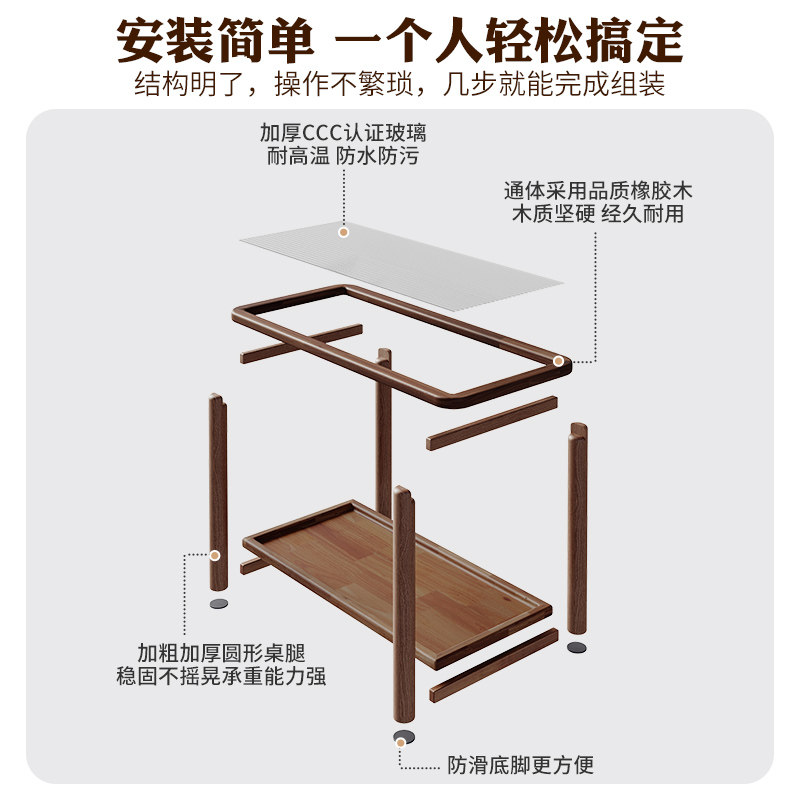 家逸边几小推车可移动茶几沙发边桌窄边柜实木小户型茶水柜置物架