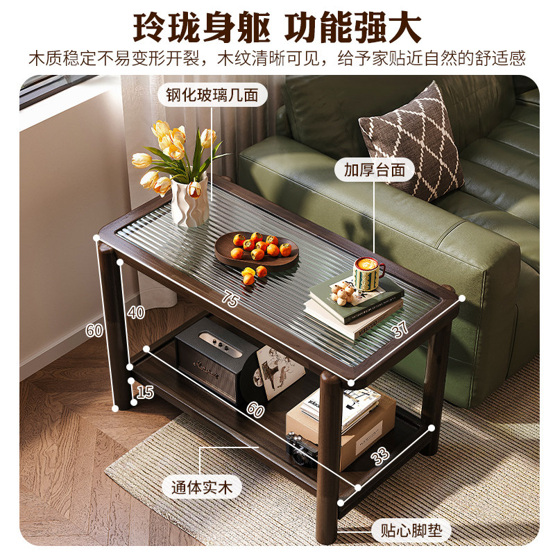 全实木边几沙发边柜家用茶几客厅简易原木风小方桌侧柜双层置物架