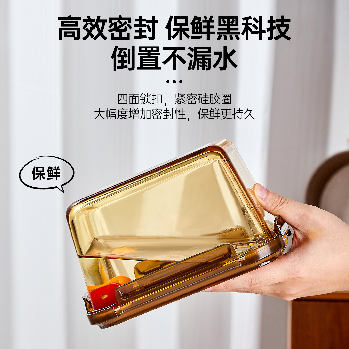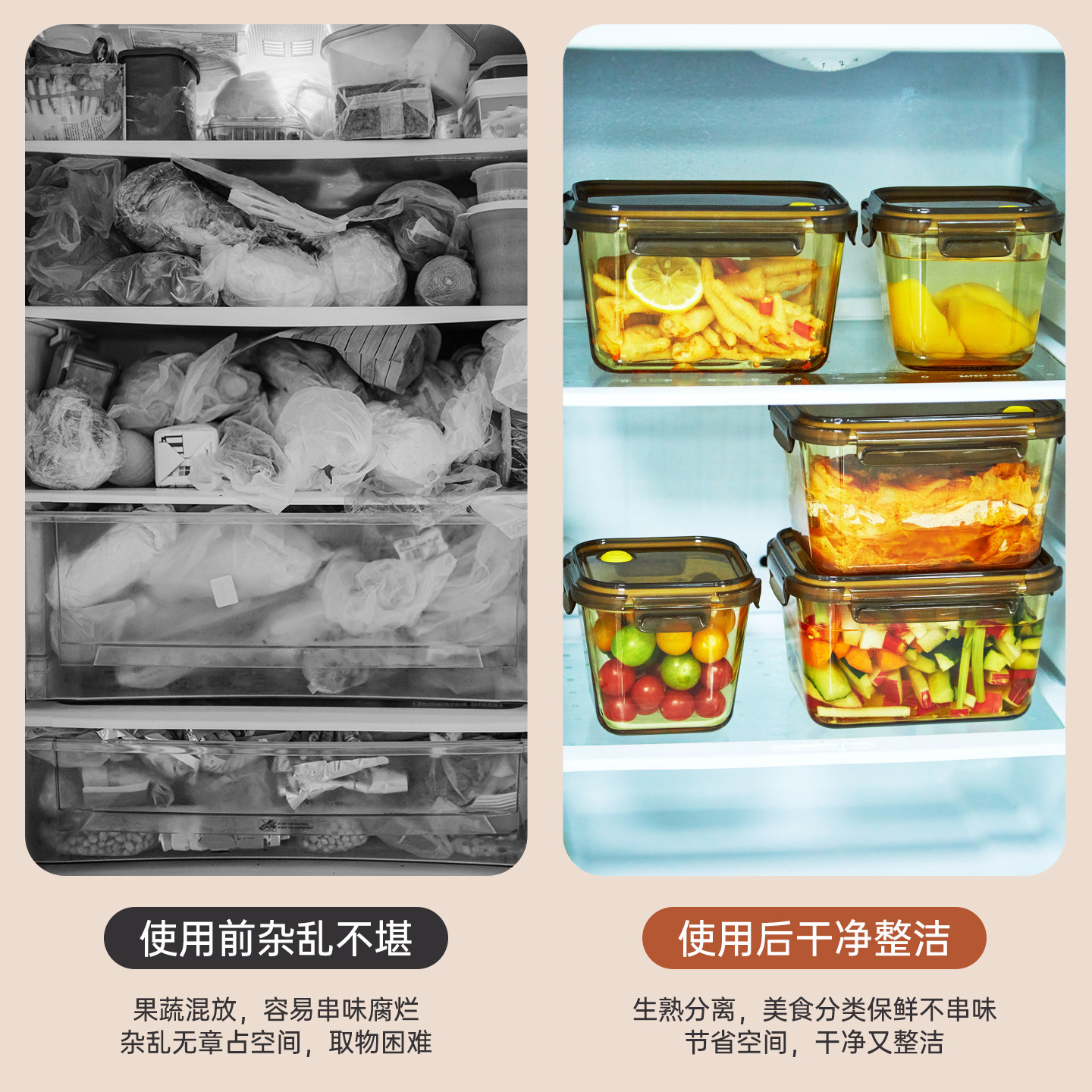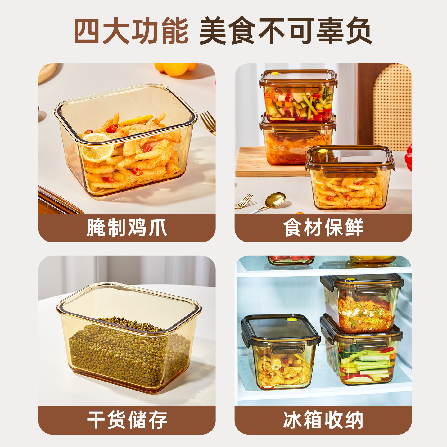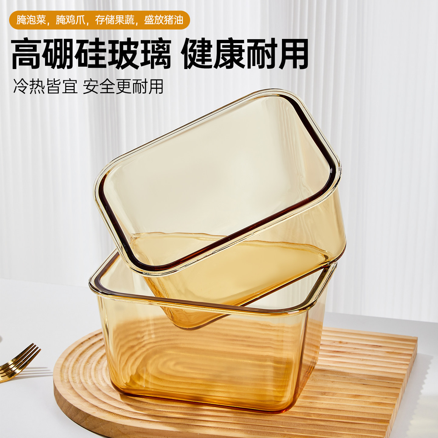 琥珀色原色高硼硅玻璃保鲜盒家用2升大容量储物泡菜密封盒