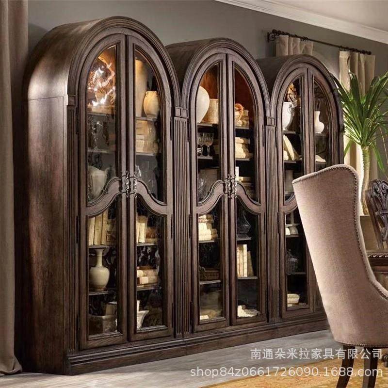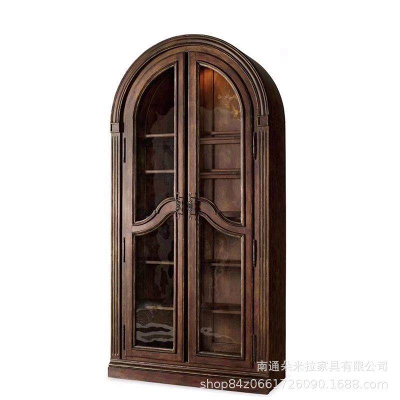 出口美式乡村两门书柜复古做旧酒柜玻璃门展示柜