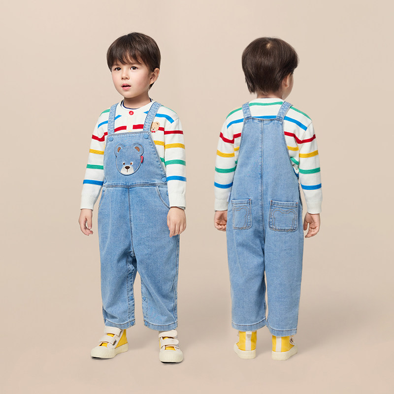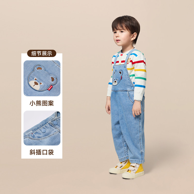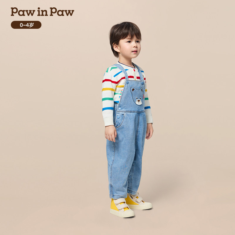 【无氨舒弹】PawinPaw卡通小熊童装25年秋季新款男宝宝牛仔背带裤