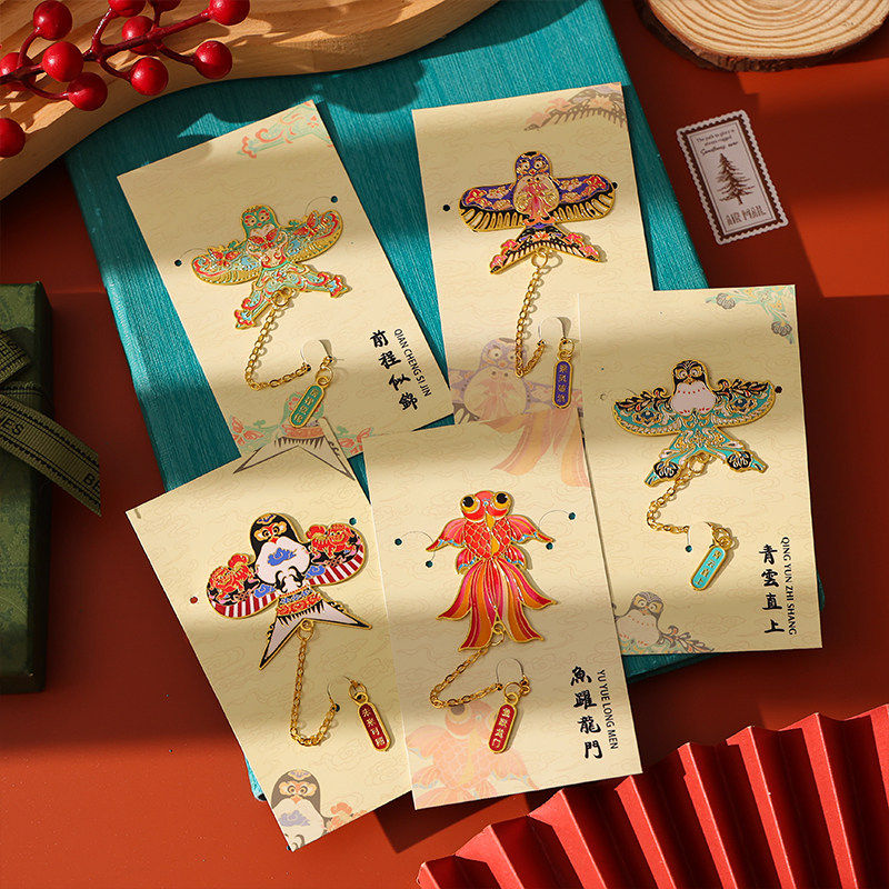 中国风古典风筝花纹金属立体书签带吊坠文创小礼品高颜值学生实用学习阅读用品书页夹精美教师节日礼物可定制