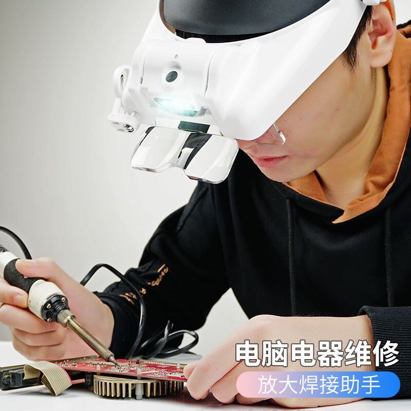 头戴式放大镜老人高清倍维修表电路板用带led灯充电微雕看书手机