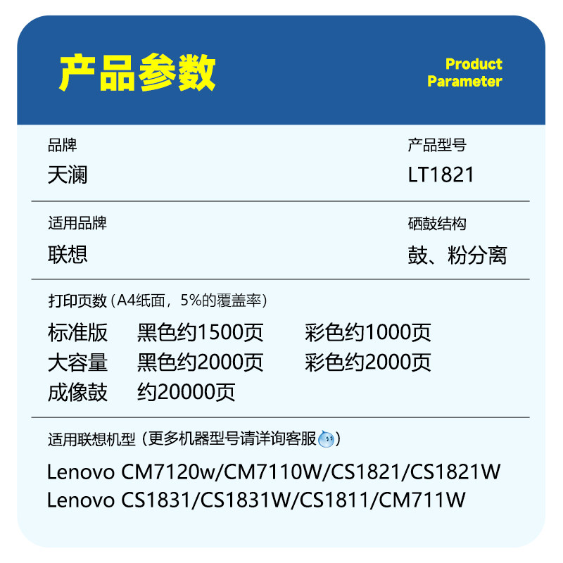 天澜适用联想LT1821粉盒cm7120w cm7110w硒鼓CS1821w CS1821w彩色打印机墨盒CS1831 CS1831w鼓组件墨粉碳粉盒