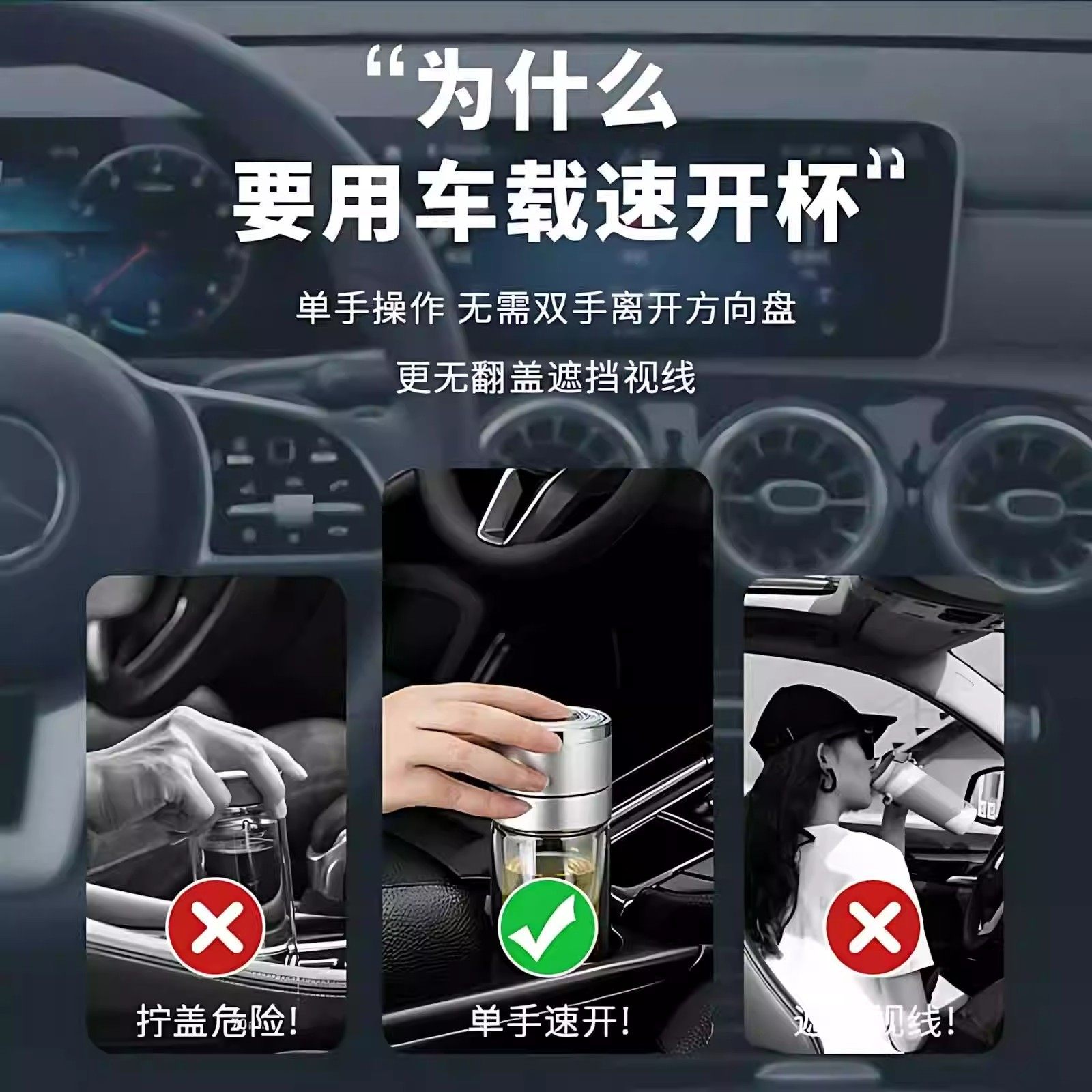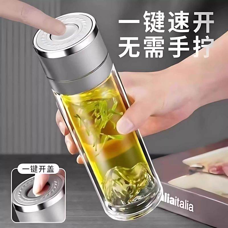 宝选一键开盖水杯车载双层玻璃杯男士泡茶保温速开茶水分离杯茶杯