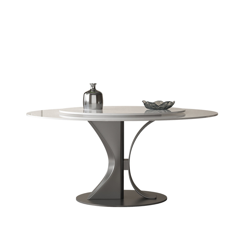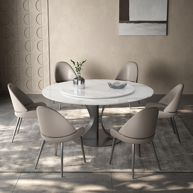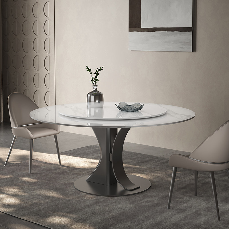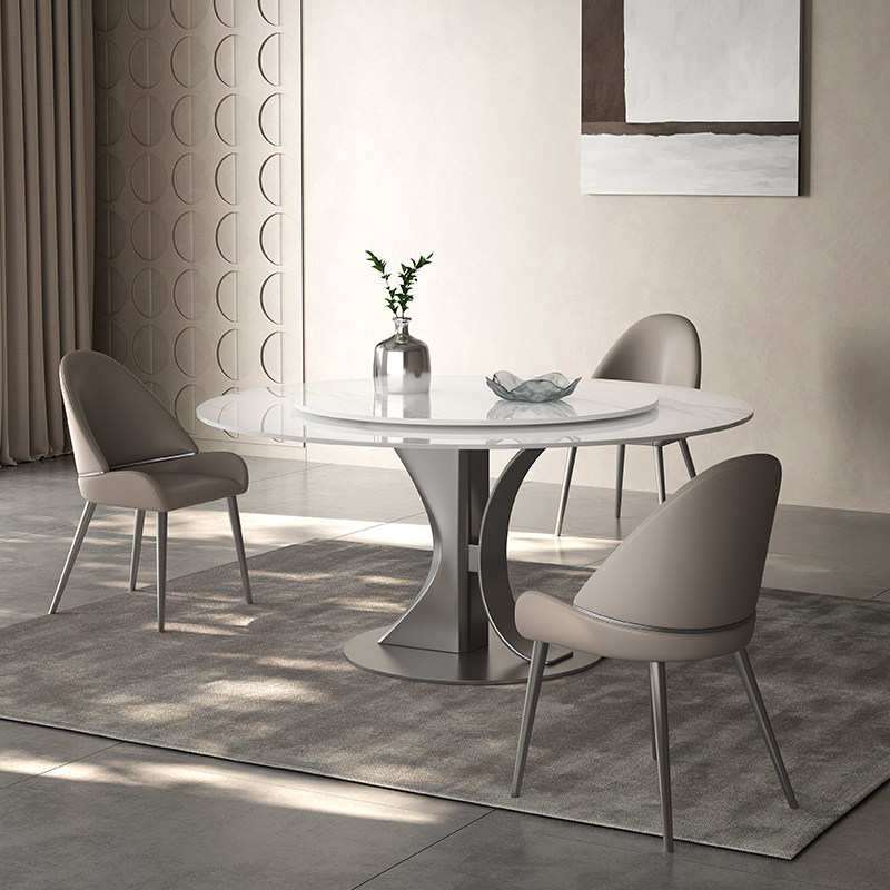 奥古斯特补贴岩板餐桌圆形带转盘亮光意式轻奢高端家用8/10人饭桌