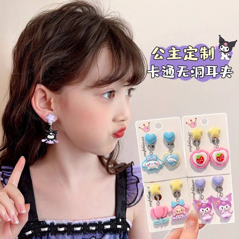 儿童宝宝可爱卡通库洛米无耳洞耳夹耳环女孩三丽鸥耳坠饰品紫色