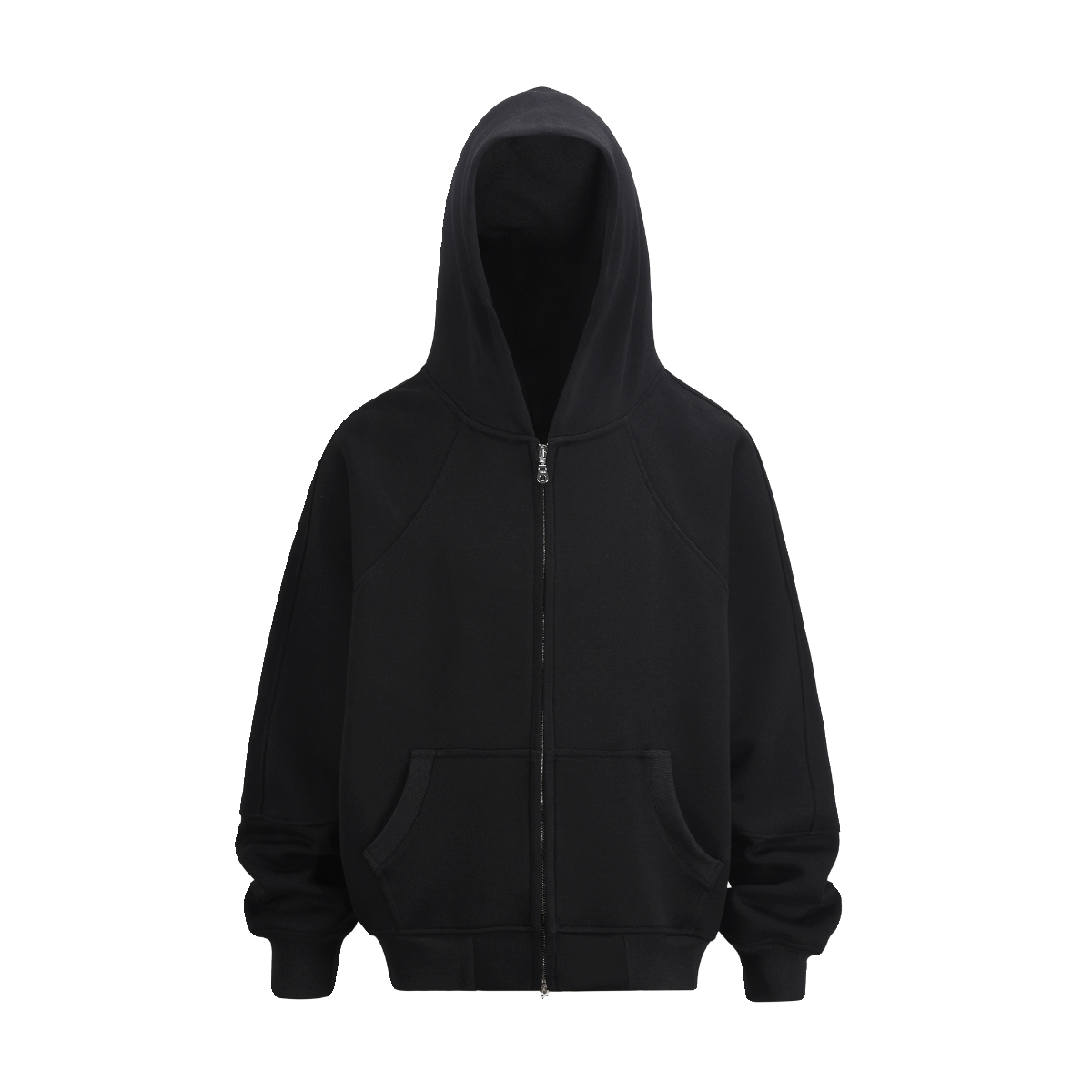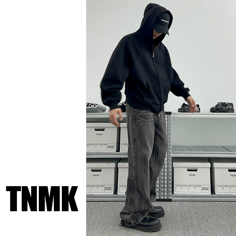 TNMK美式重磅500G灰色开衫卫衣男女纯色落肩袖连帽短款宽松外套潮