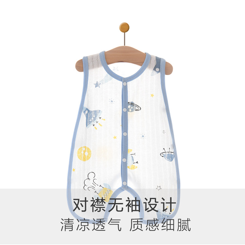 婧麒婴儿琵琶衣薄款夏季新生儿连体衣服男宝宝无袖背心哈衣春夏装