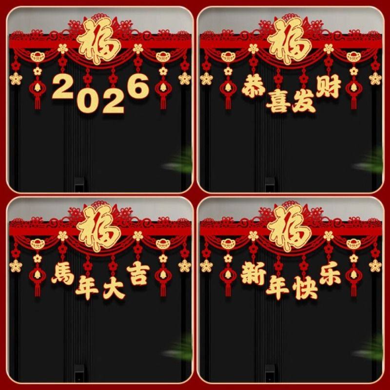 2026马年门楣拉花装饰福字挂件室内商场新年春节场景布置家用挂饰
