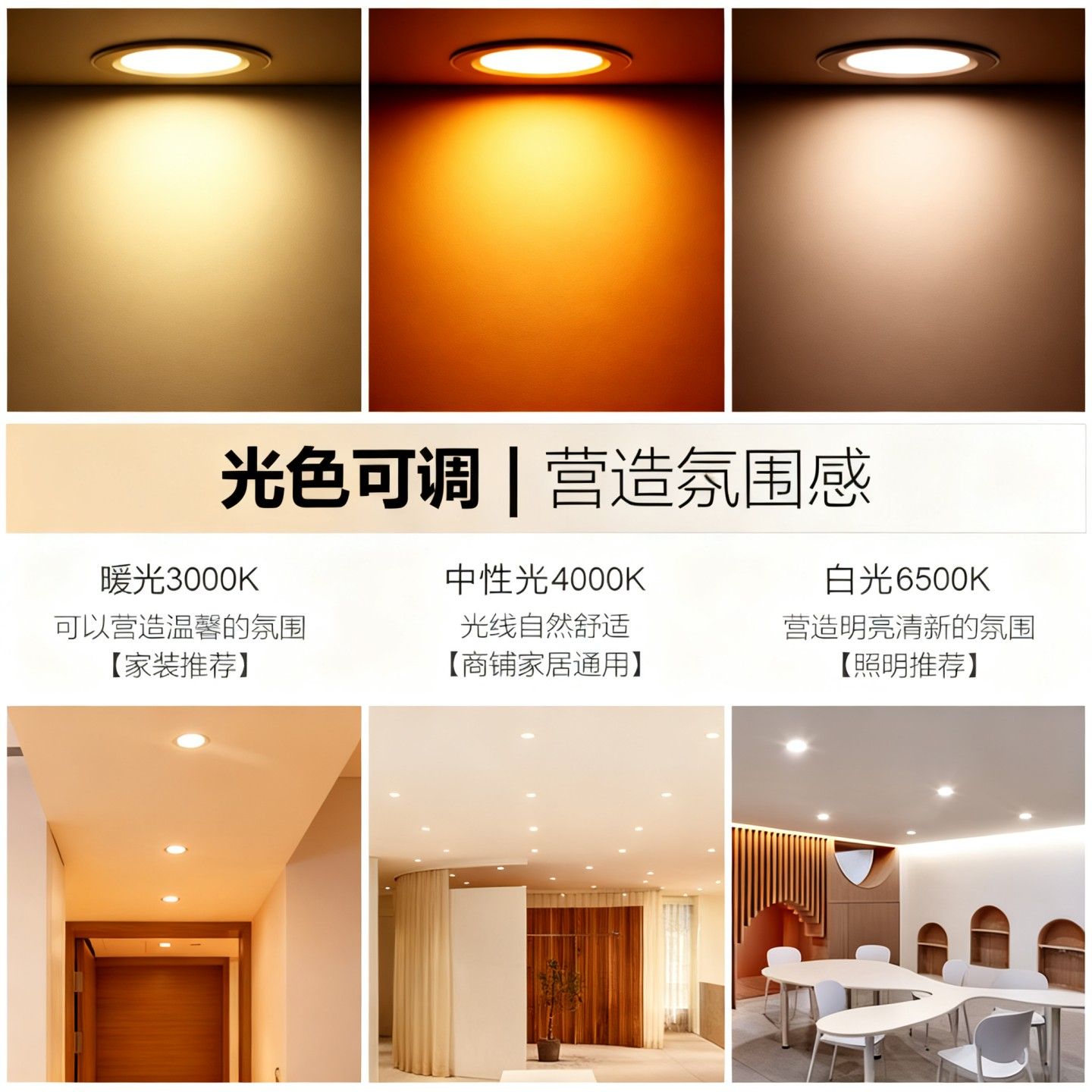 筒灯led7W5W洞灯嵌入式客厅灯天花灯孔灯三色变光开孔7.5家装工程