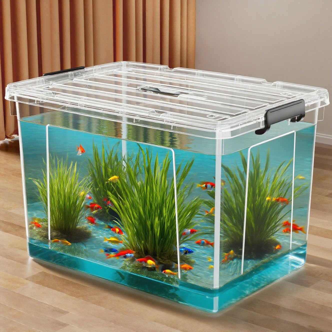 【塑料鱼缸】透明PP材质塑料收纳箱加厚周转箱防摔方形桌面养鱼箱