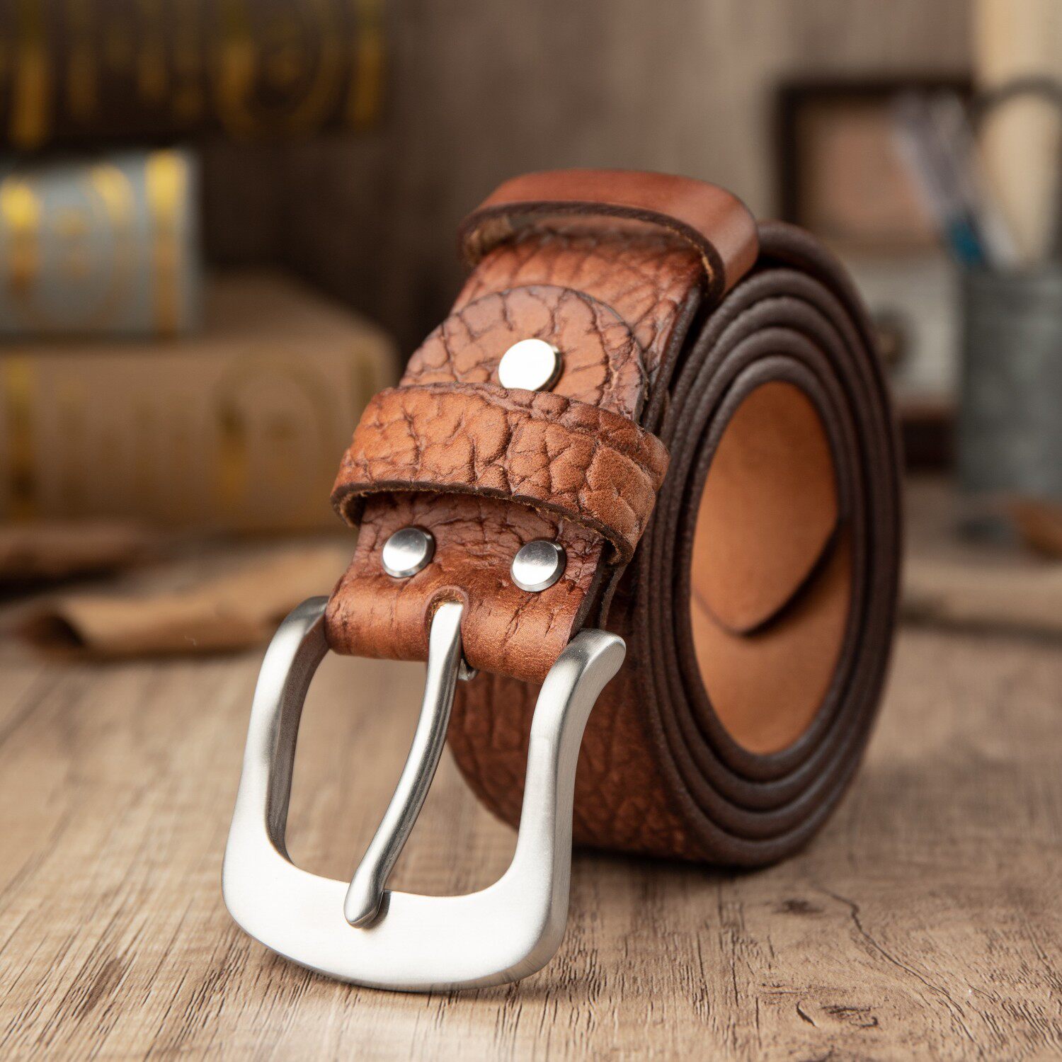 加厚头层牛皮马蹄扣钢扣男士真皮皮带复古时尚百搭牛皮腰带商务