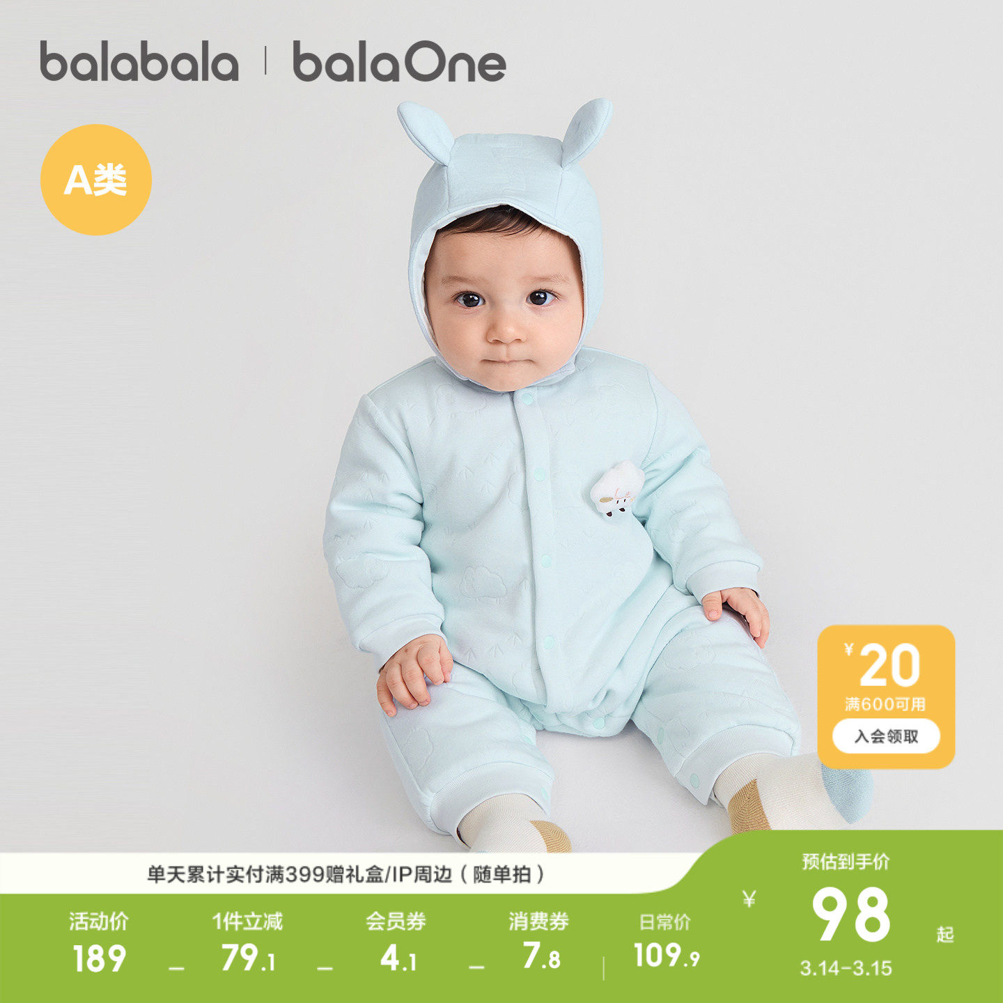 巴拉巴拉新生婴儿连体衣夹棉冬装2026款秋冬宝宝衣服爬服哈衣可爱