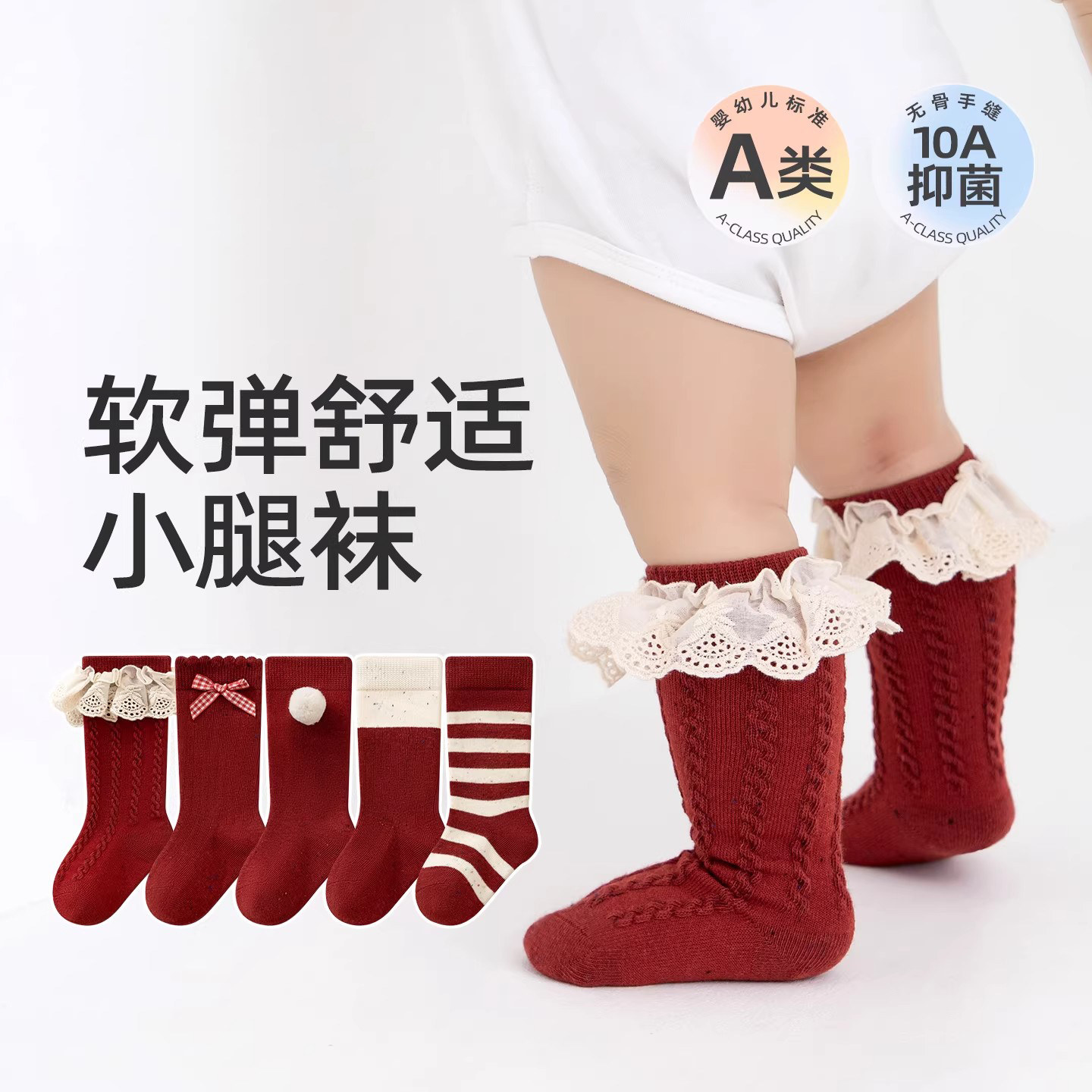 宝宝婴儿红色袜子秋冬棉袜a类公主蝴蝶结女宝新生春秋中筒小腿袜