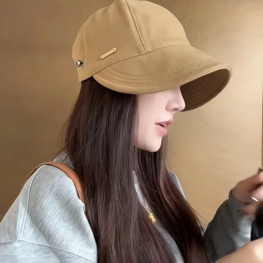 遮脸鸭舌帽子女秋冬渔夫帽明星同款休闲毛呢帽帽檐薄款黑色韩系