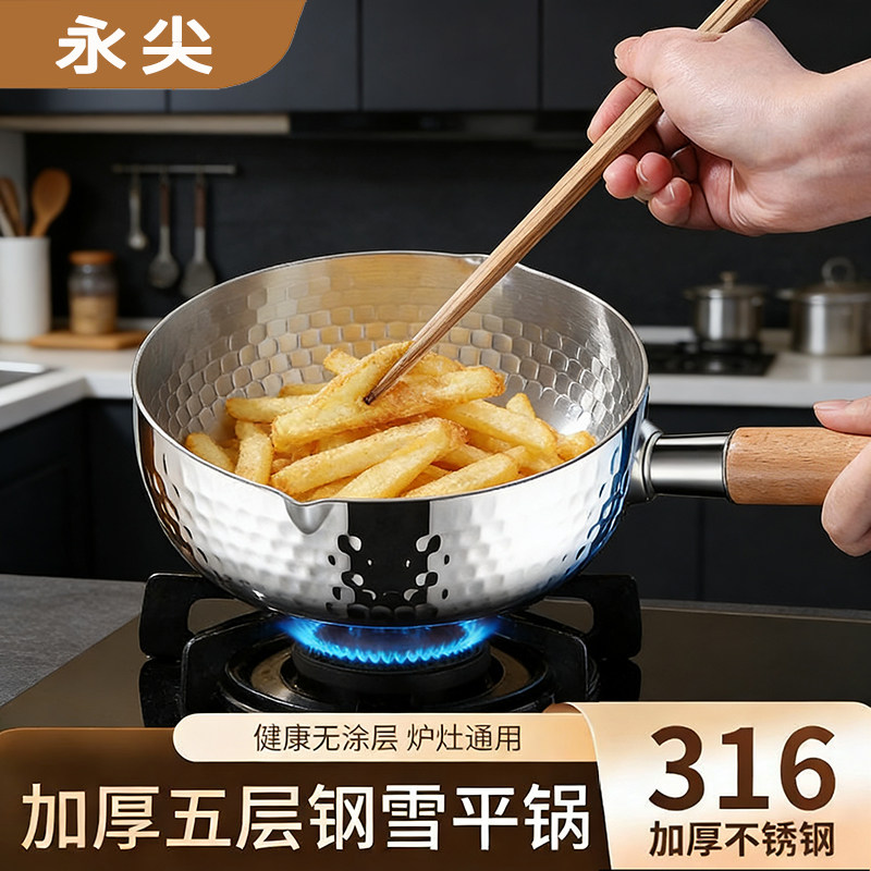 永尖食品级316不锈钢雪平锅无涂层家用小锅煮面辅食汤锅电磁炉