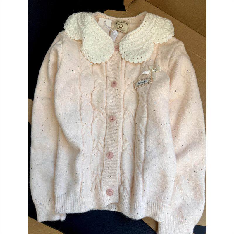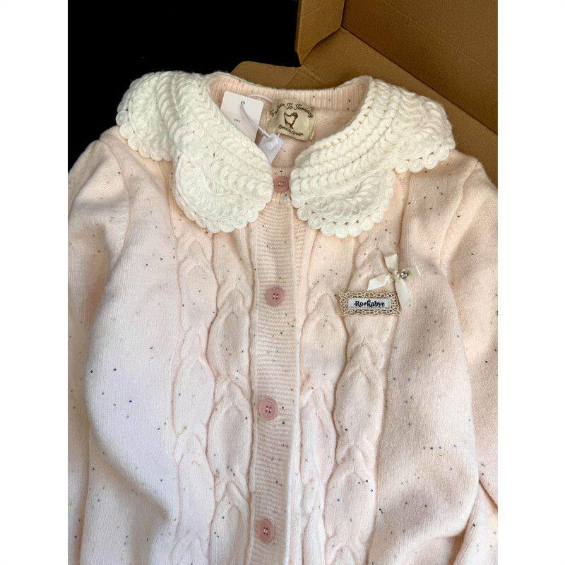 蕾丝温柔针织衫甜美拼接娃娃毛衣秋冬大码内搭花边针织开衫上衣