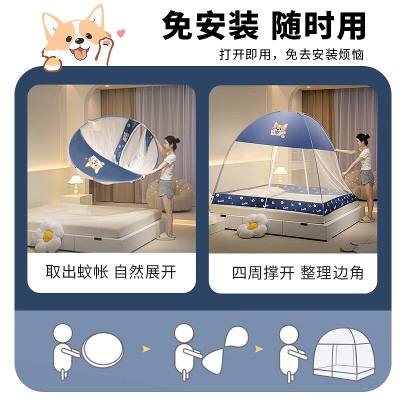 蒙古包蚊帐2026新款家用卧室免安装蚊帐防摔全底婴儿防摔学生宿舍
