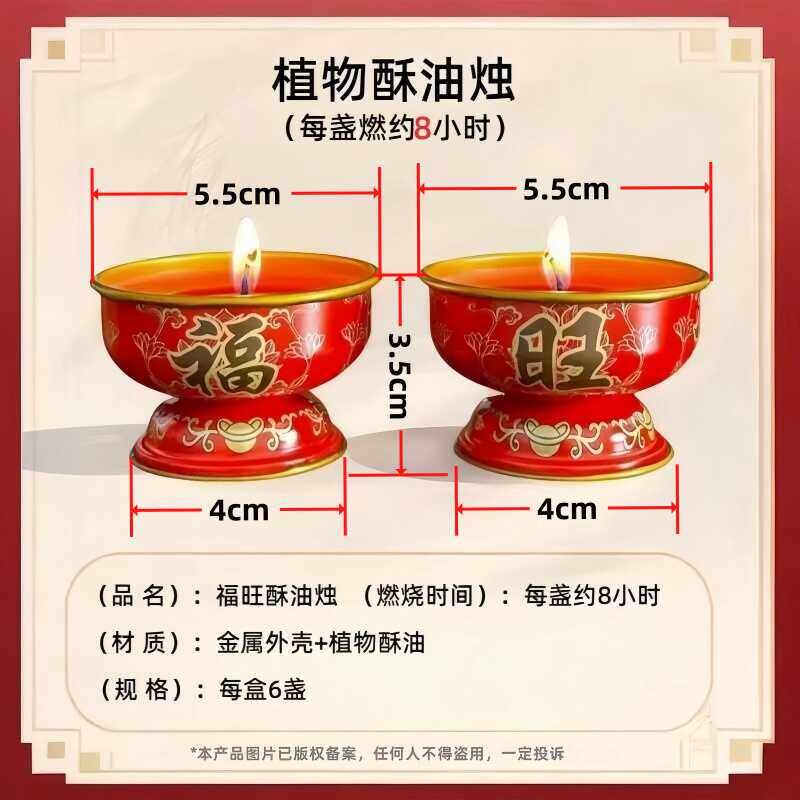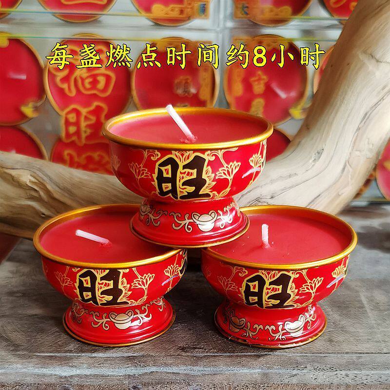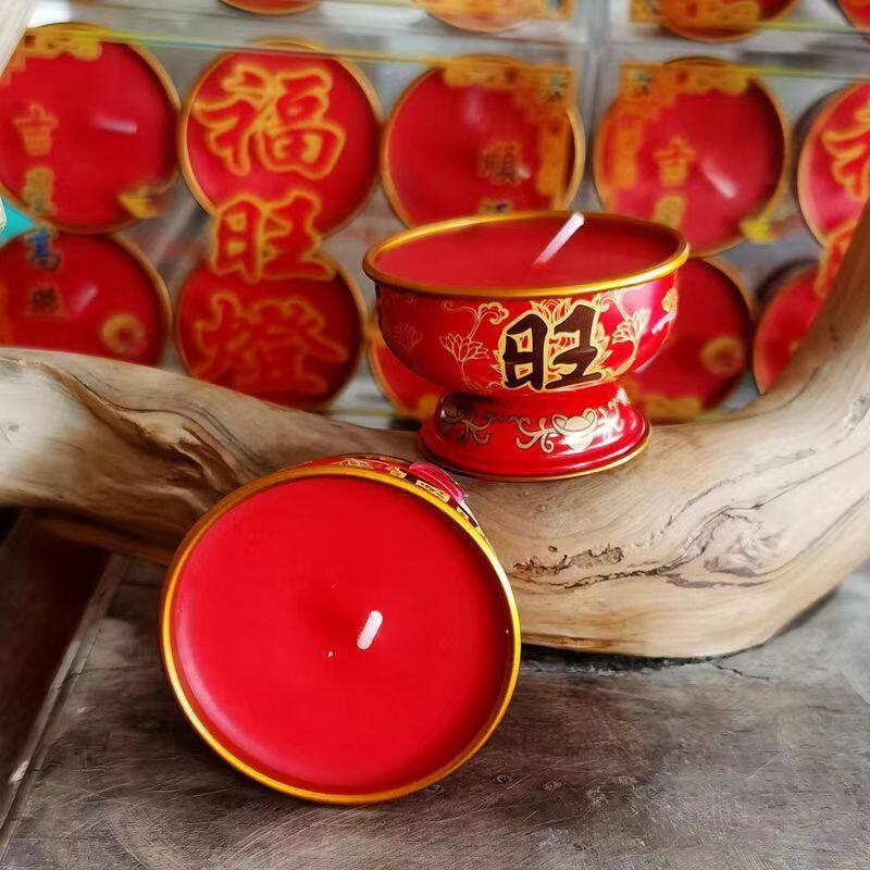 福旺灯蜡烛过年家用纯植物酥油灯金属座佛灯长明无烟无味烛