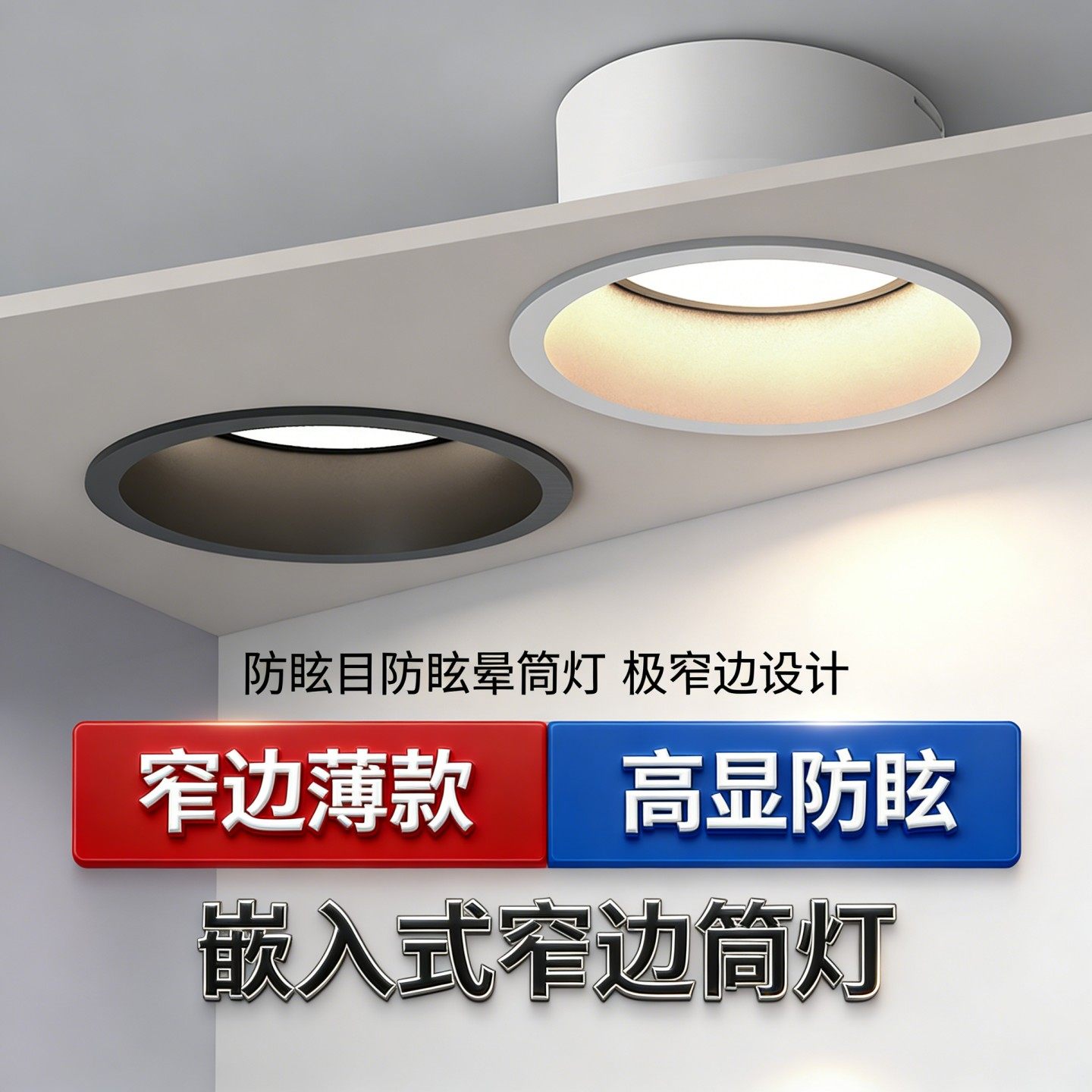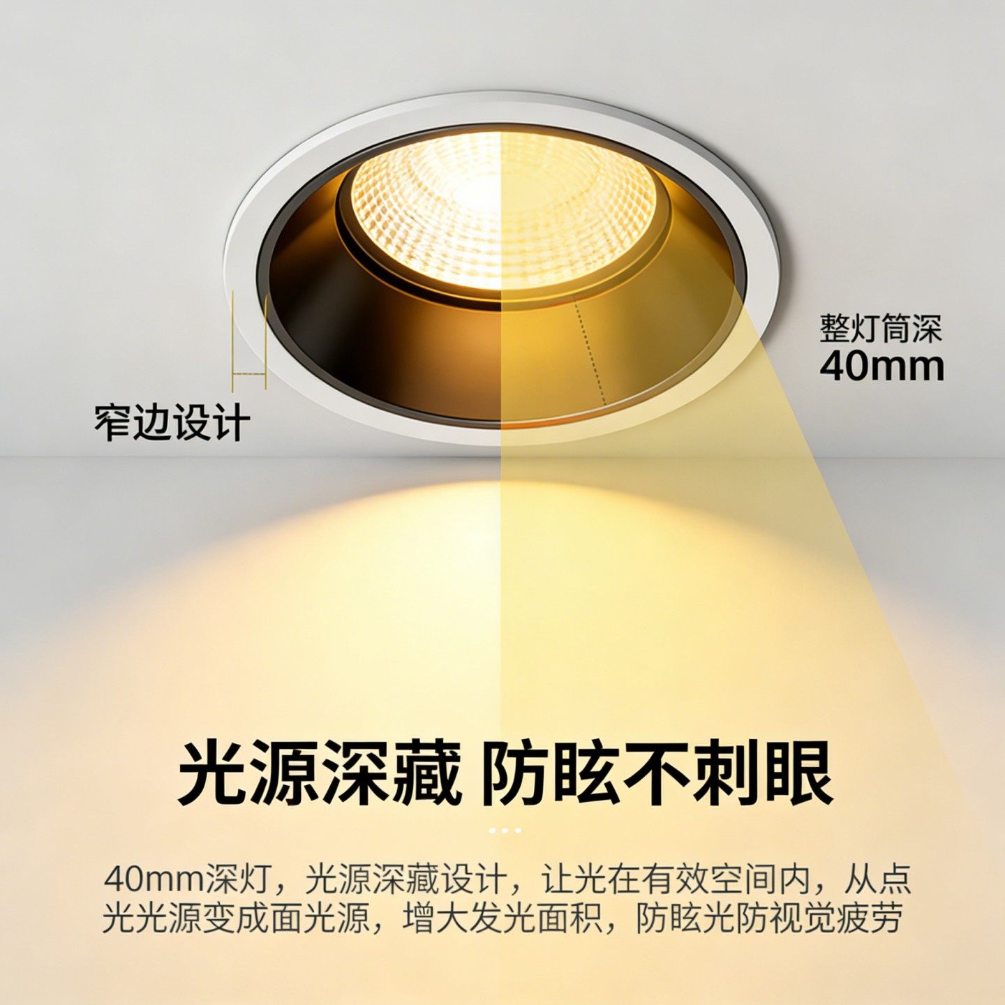 led防眩光筒灯窄边框家用吊顶无主灯嵌入式天花灯全铝开孔75mm