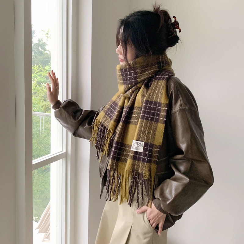 三福格子围巾韩系高级感保暖围脖披肩两用旅游外搭女冬季2025新款