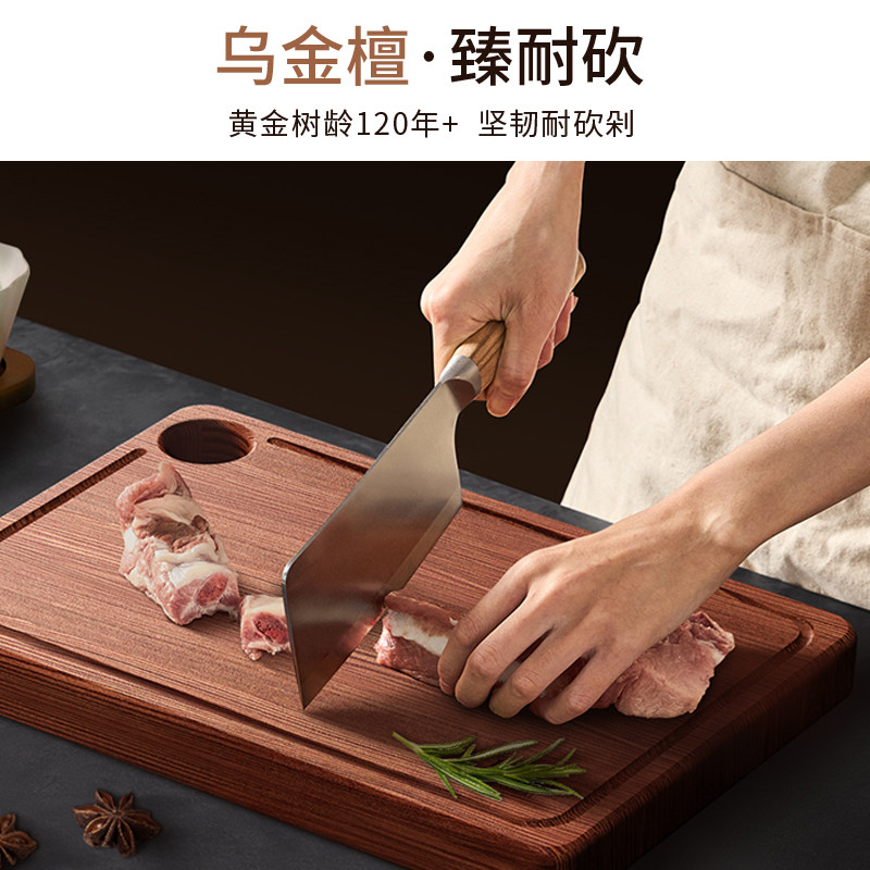 乌檀木菜板防霉抗菌砧板食品级家用进口整木双面切菜板厨房专用
