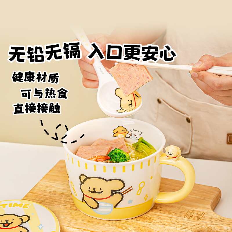 言仓线条小狗泡面碗大容量带把手汤碗汤勺一人食可爱餐具新年礼物