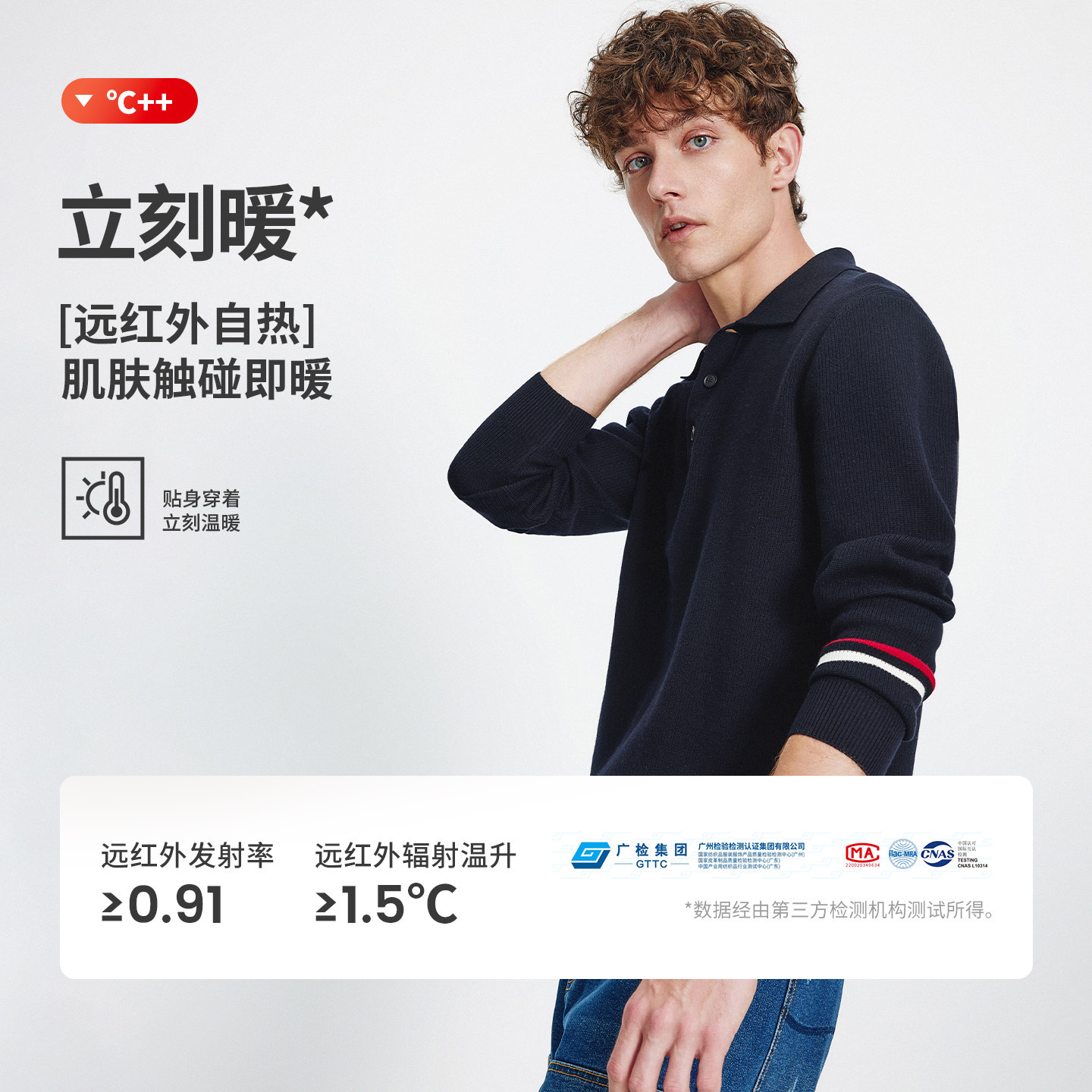 森马毛衫男冬季含羊绒针织衫发热抑菌2025新款基础圆领黑色打底衫