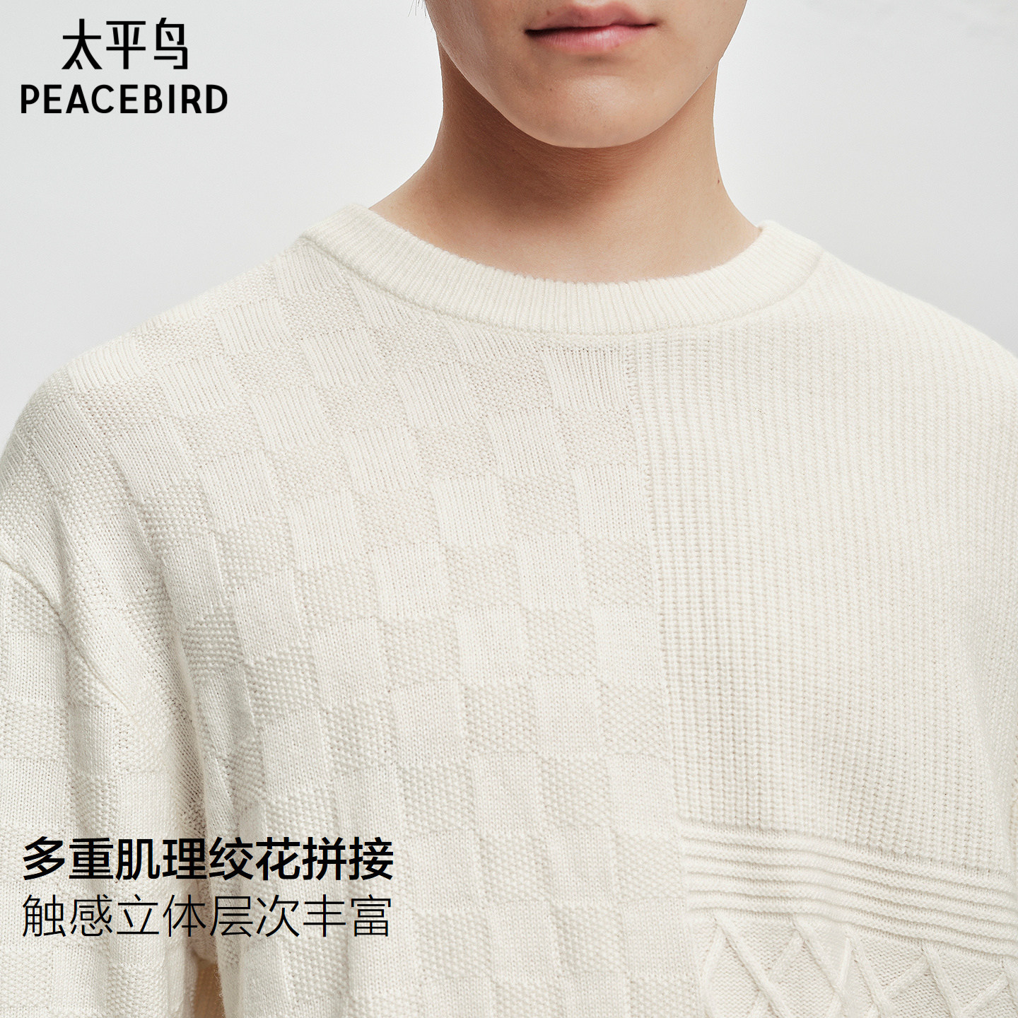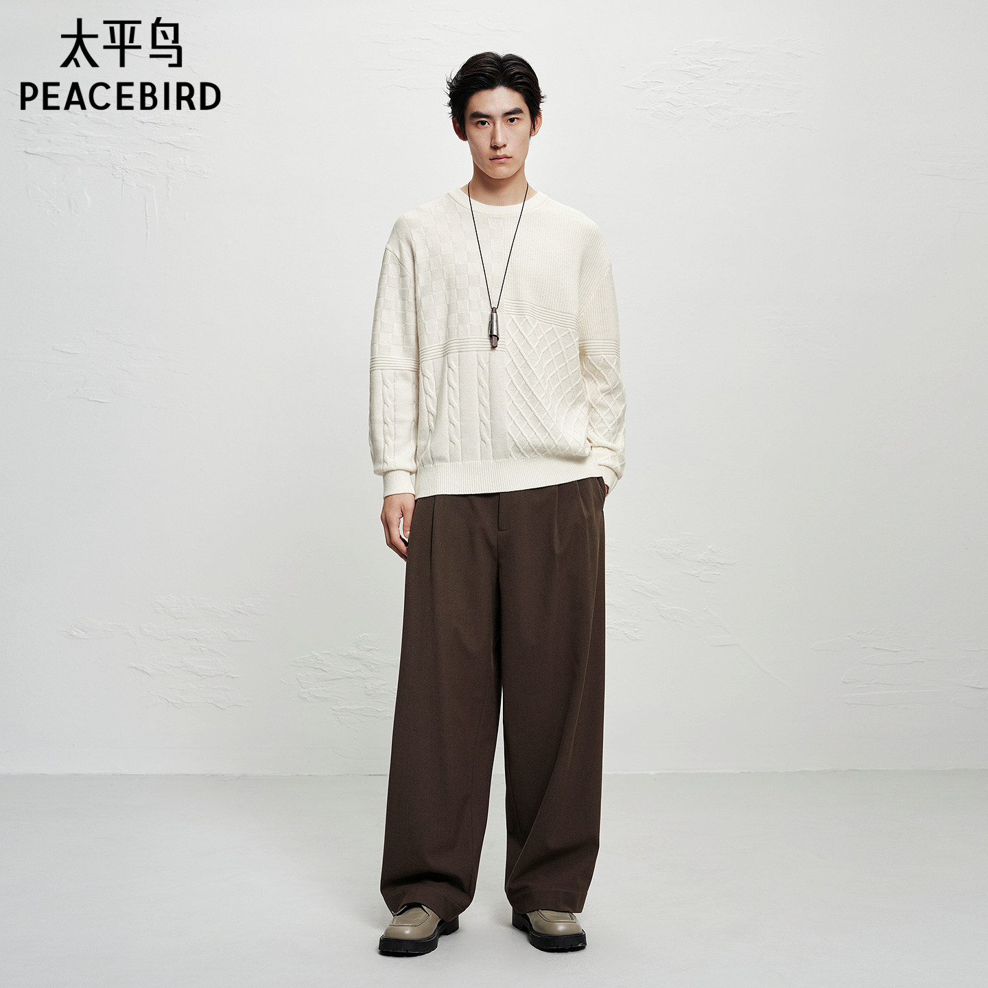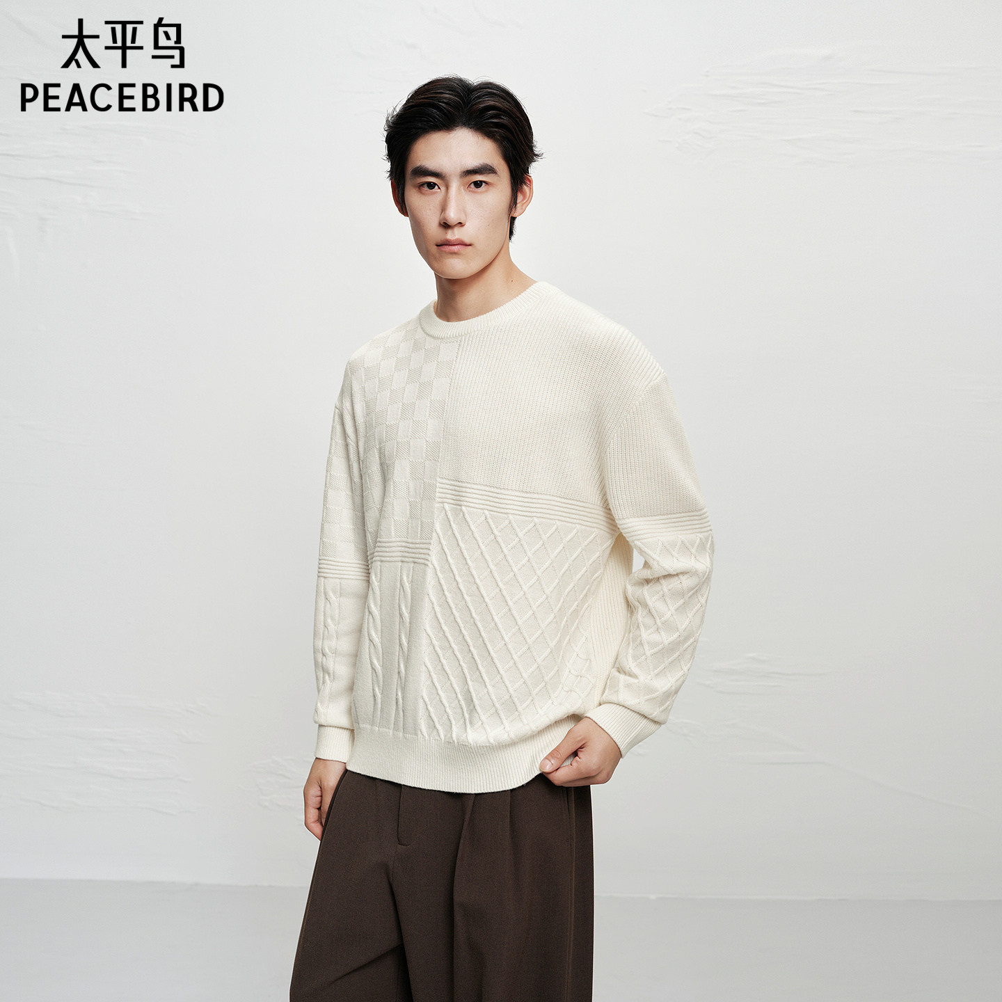 太平鸟男装 休闲毛衫2025冬新款圆领绞花宽松羊毛衫男士休闲毛衣