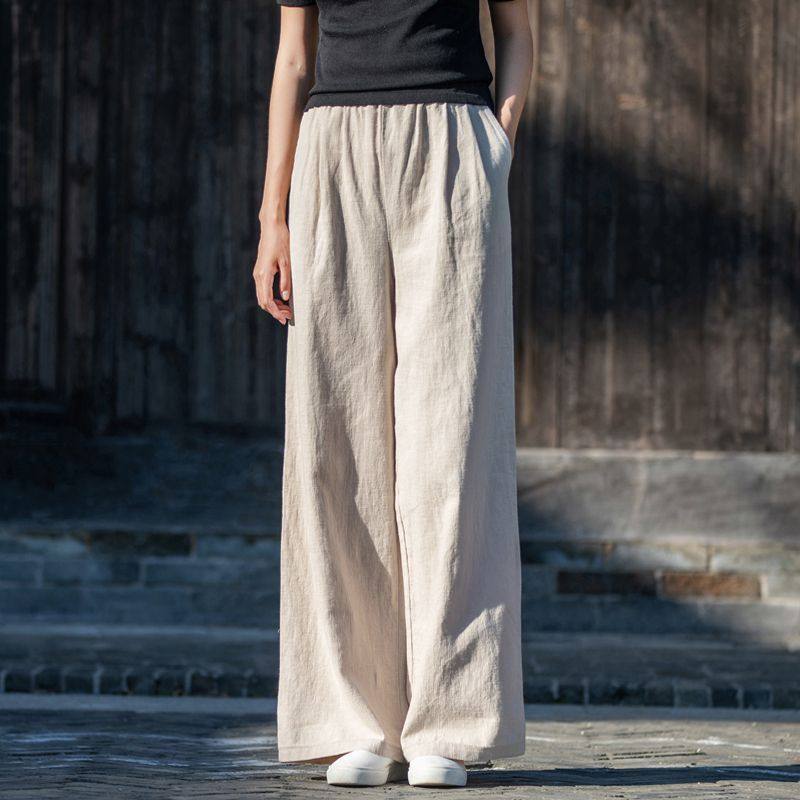 棉麻阔腿裤2025新款春夏文艺休闲裤大脚宽腿裤亚麻百搭女式长裤子
