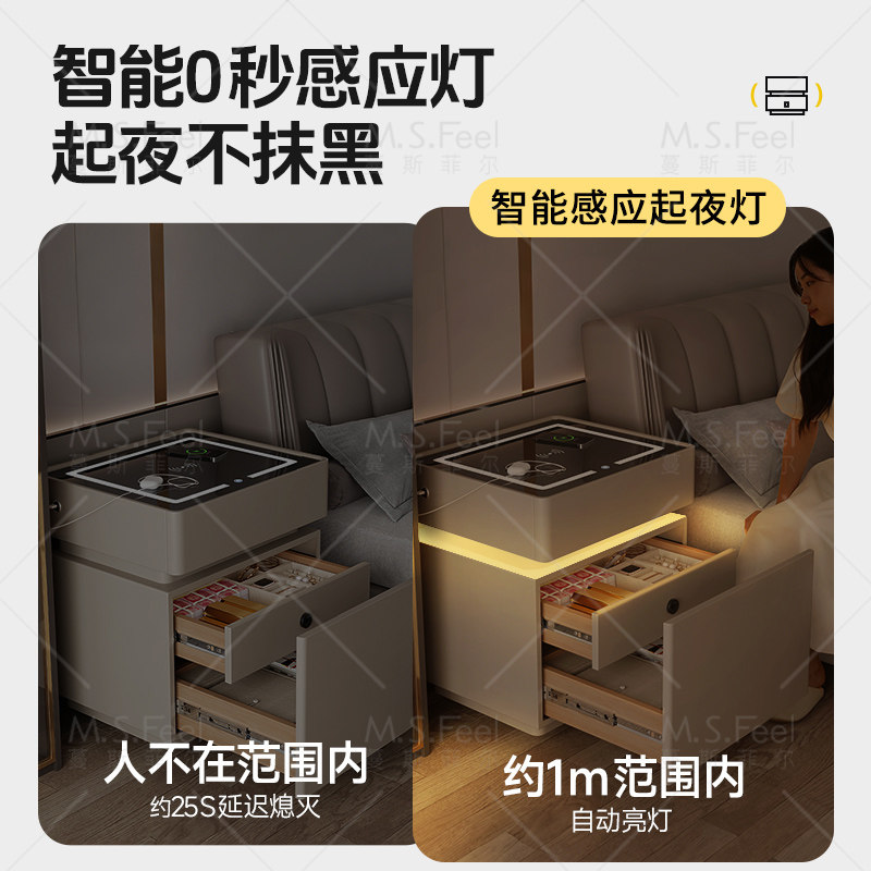 智能床头柜实木家用卧室2025爆款多功能卧室音响床边收纳柜储物柜