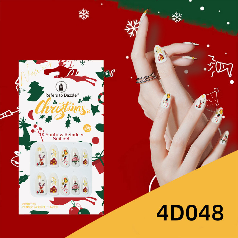 2025新款圣诞穿戴甲杏仁甲猫眼立体装饰3D浮雕欧美现货