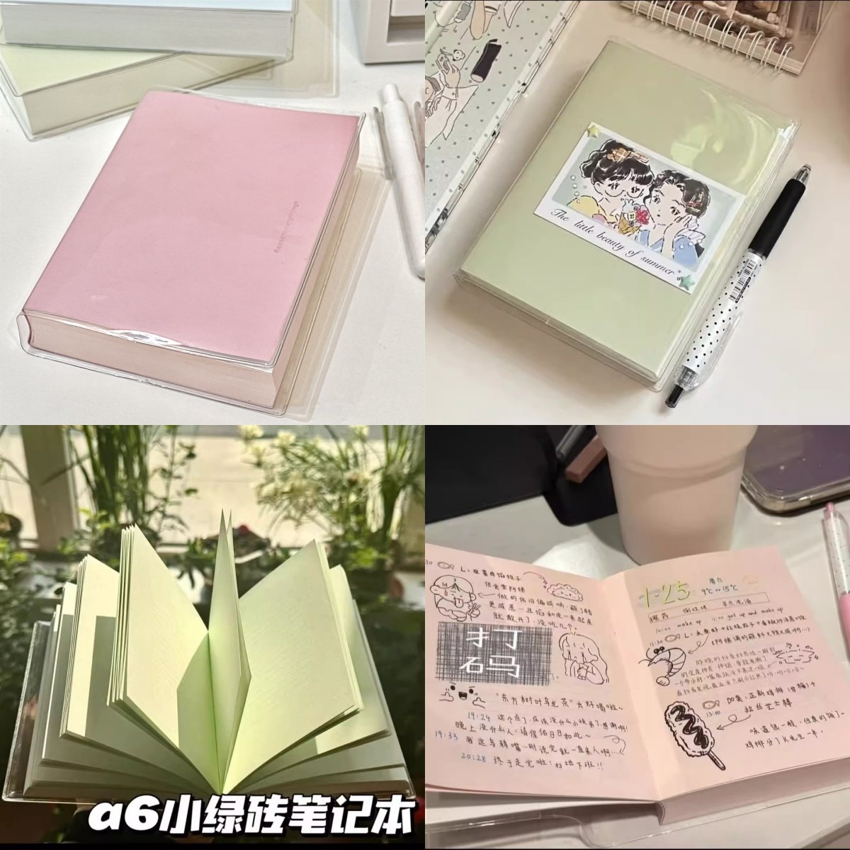 小红书同款简约小奶砖A6胶套笔记本学生ins高颜值加厚手帐横线本