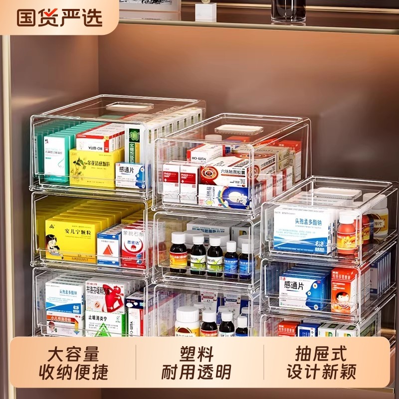 抽屉式药物收纳盒医药箱家庭装大号药品药盒收纳箱透明密封大容量