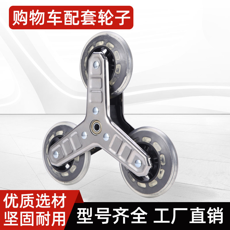 守望者铝合金购物车轮子 复式轴承水晶PU耐磨轮 轴承三角上楼梯轮