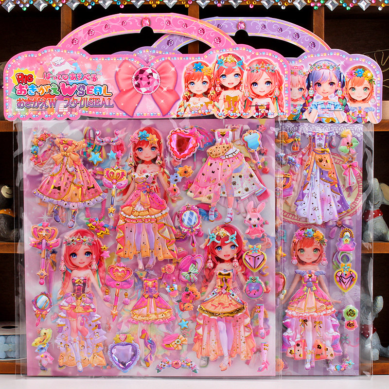 精美公主宝石换装贴画sticker芭比娃娃装扮换衣服立体女孩粘贴纸