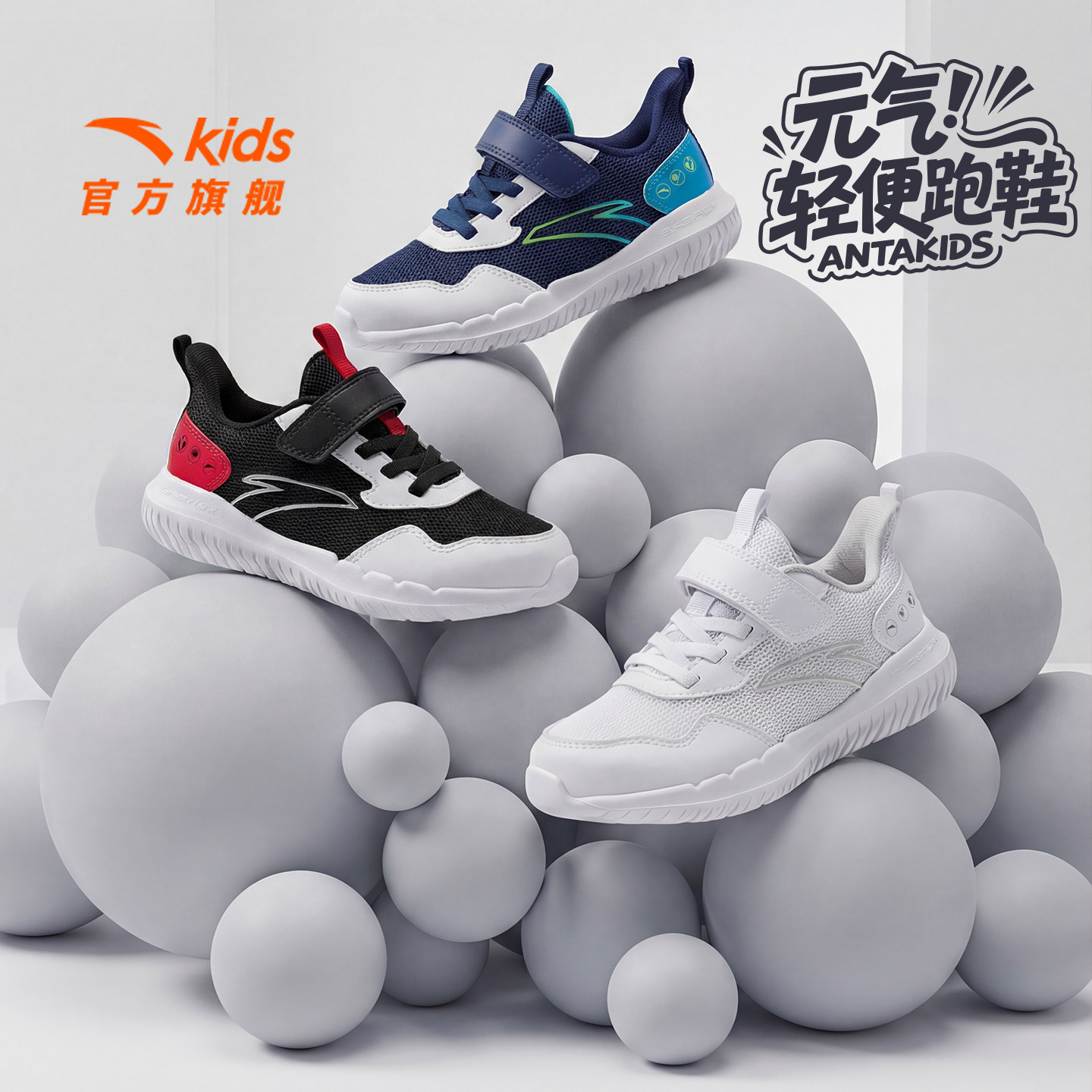 安踏男童鞋2026春夏季新款皮面大童跑鞋子官方旗舰透气儿童运动鞋