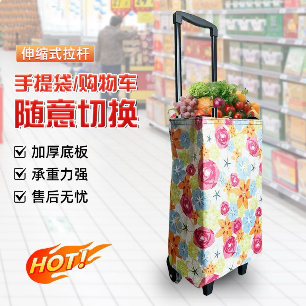 购物袋带轮子可折叠买菜小拉车拖轮便携式大容量推车超市手提袋