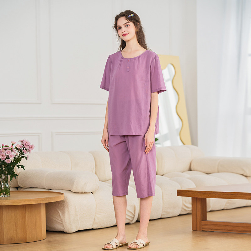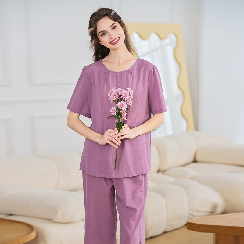 美标新款短袖纯棉睡衣套装女春夏季全棉薄款甜美可爱可外穿家居服