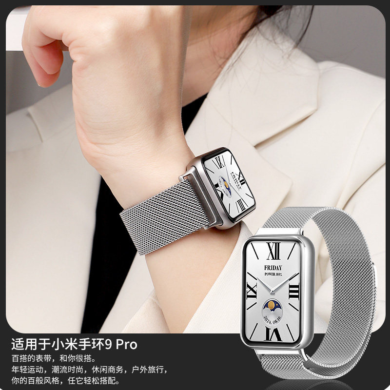 适用小米手环9Pro/8pro玫瑰金xiaomi8/9代pro男女红米5手表watch4腕带米兰尼斯redmi磁吸智能运动配件秋冬季